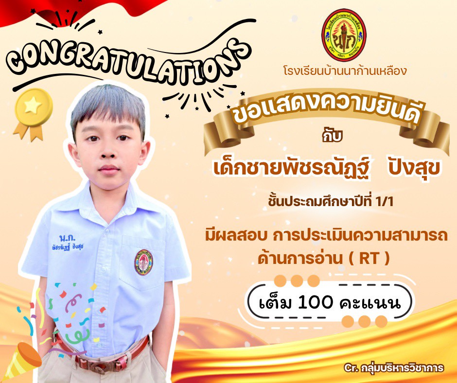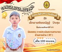 ผลการประเมินความสามารถด้านการอ่านของผู้เรียน (RT) ประถมศึกษาปีที่ 1 เต็ม 100 จำนวน 8 คน