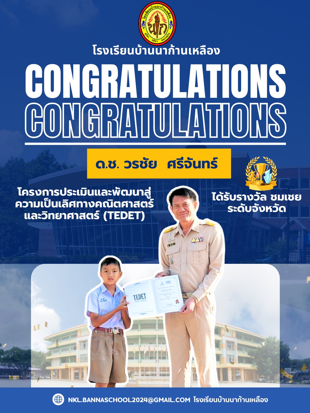 รางวัลชมเชย ระดับจังหวัดโครงการประเมินและพัฒนาสู่ความเป็นเลิศทางคณิตศาสตร์และวิทยาศาสตร์ (TEDET)