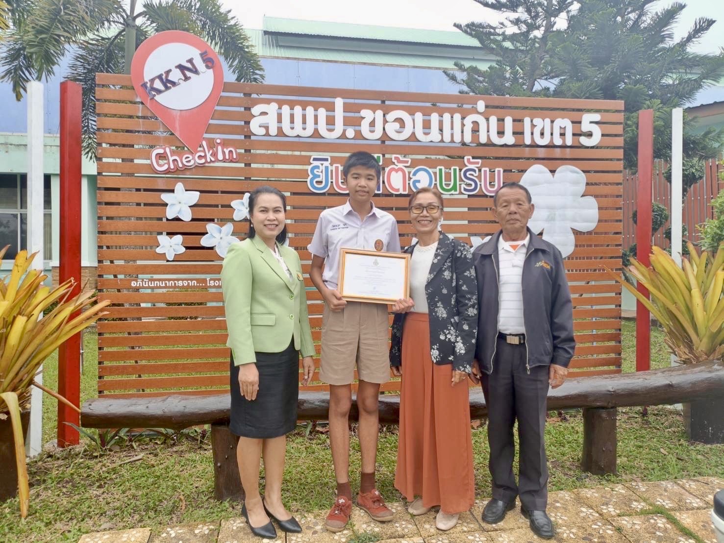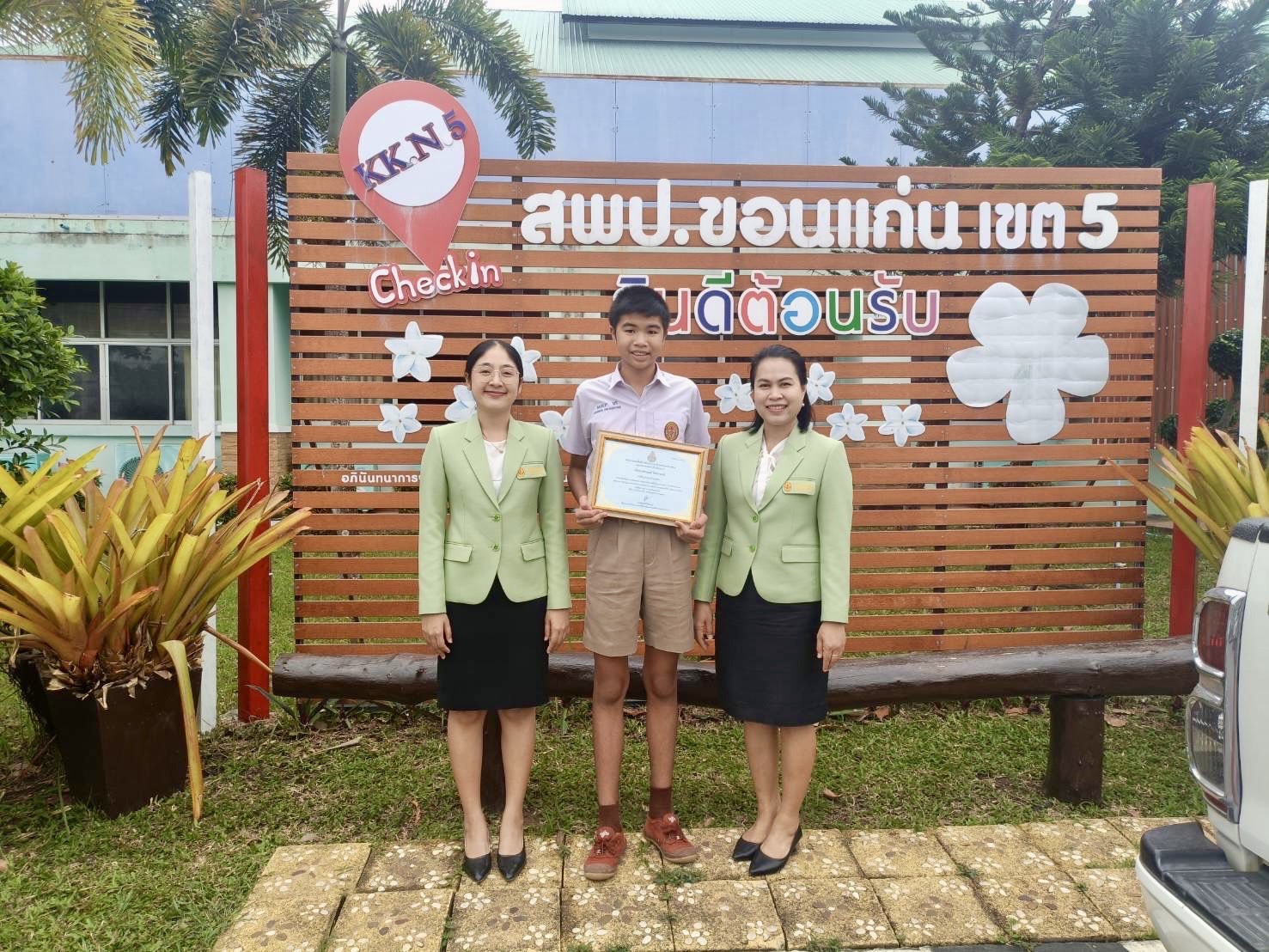 นายสุระศักดิ์ เพียสุระ ผู้อำนวยการสำนักงานเขตพื้นที่การศึกษาประถมศึกษาขอนแก่น เขต 5 มอบเกียรติบัตร เด็กชายชานนท์ ปัทถาพงษ์