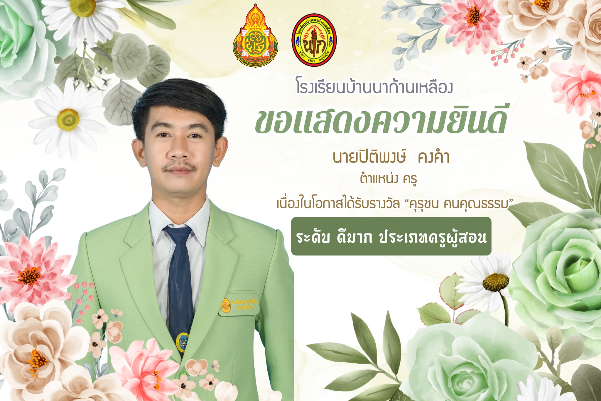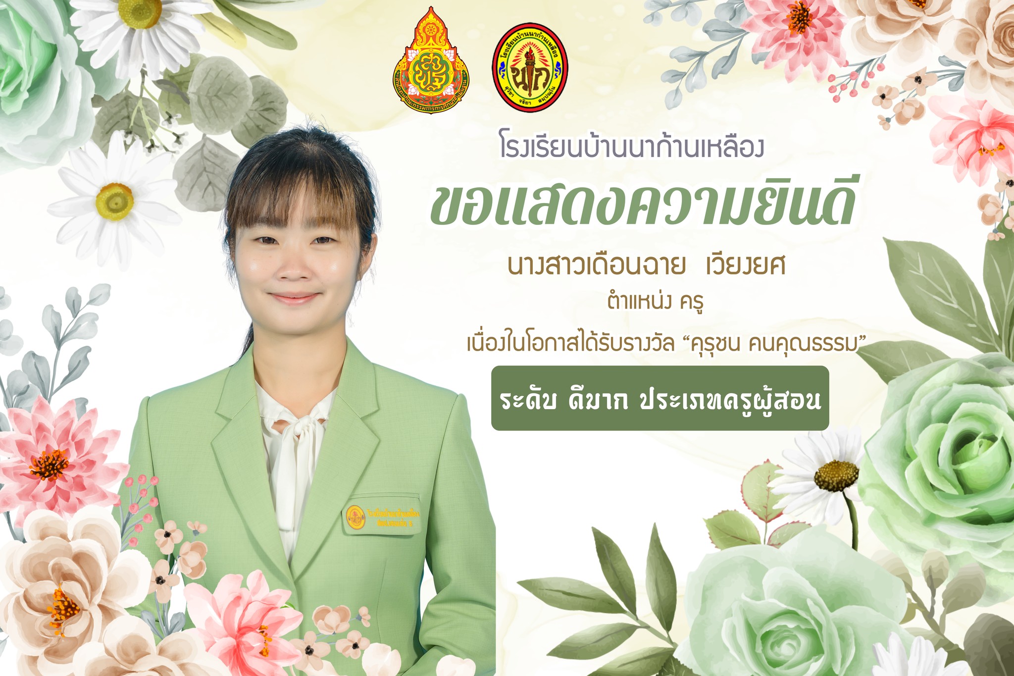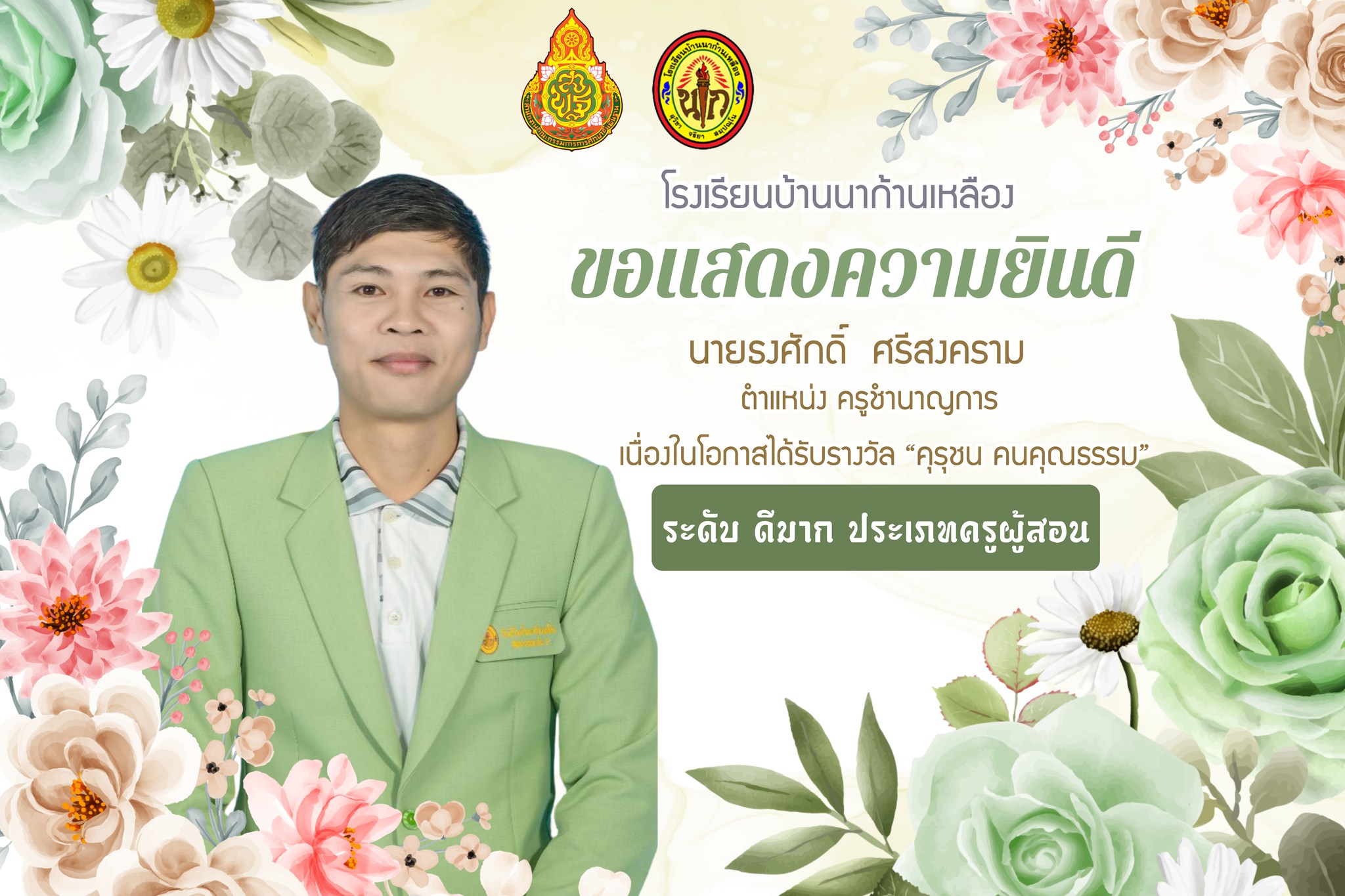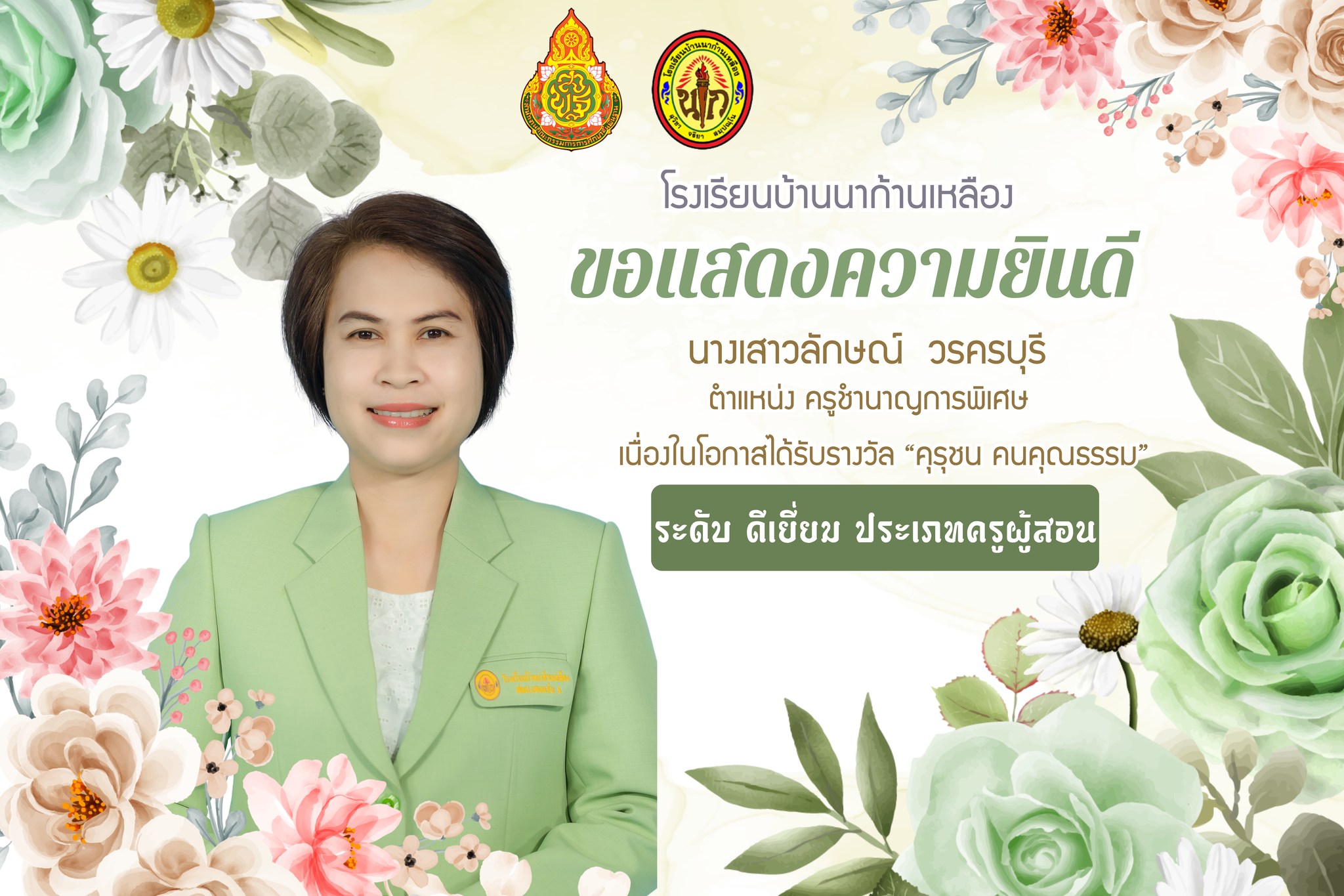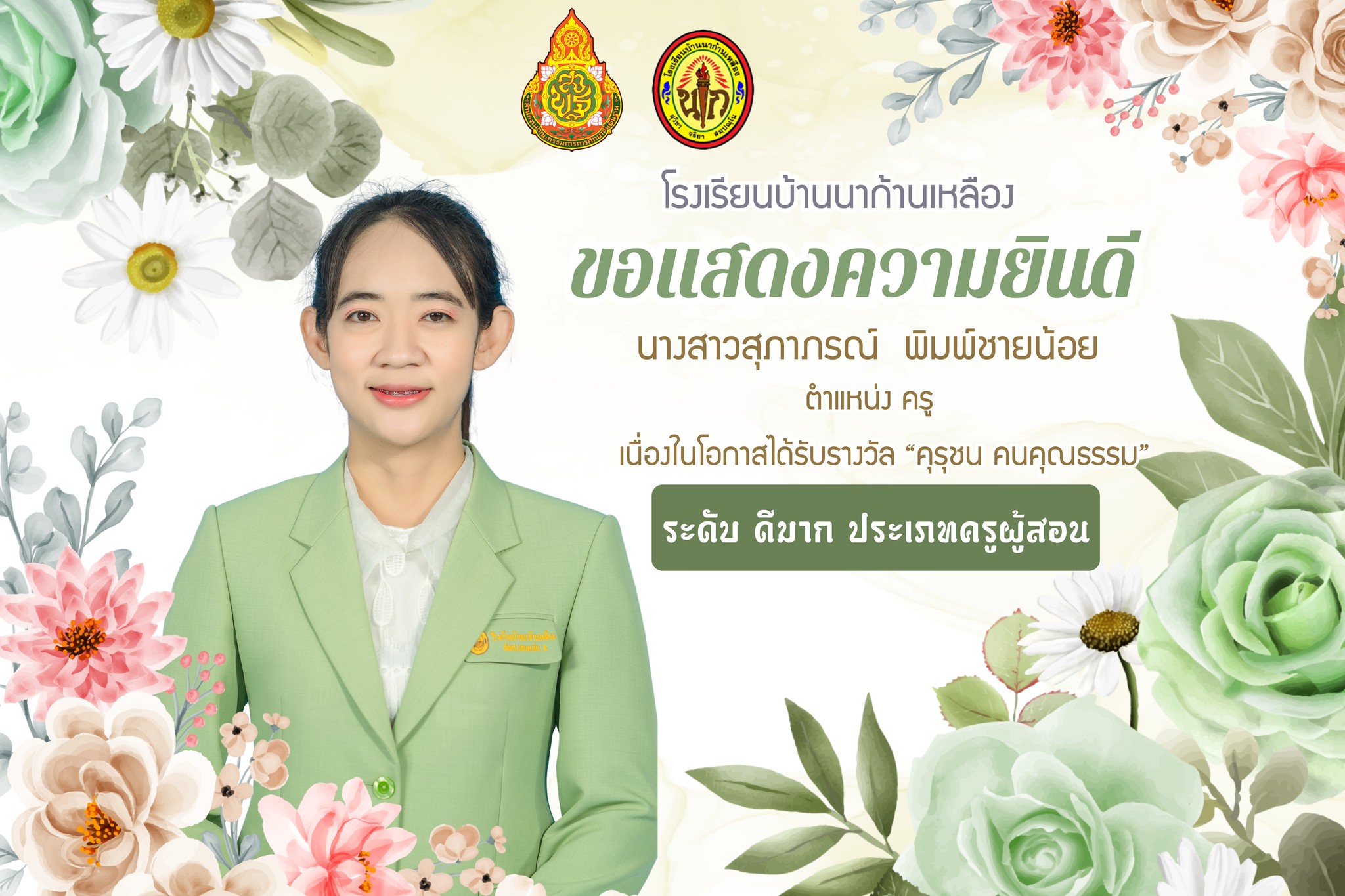 โรงเรียนบ้านนาก้านเหลือง ขอแสดงความยินดีกับผู้บริหาร และคณะครูที่ได้รับรางวัลคุรุชน คนคุณธรรม ประจำปีงบประมาณ 2568