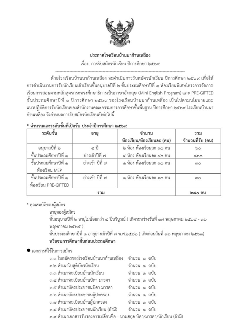 ประกาศโรงเรียนบ้านนาก้านเหลือง