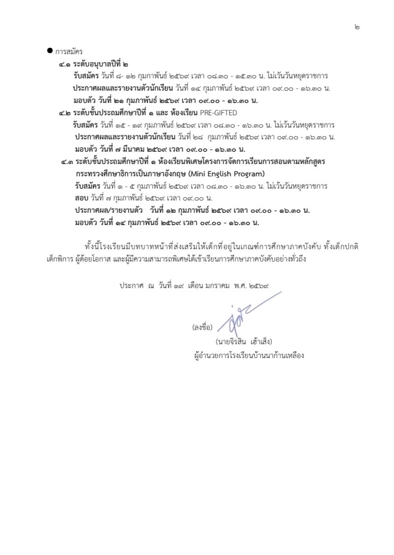 เรื่อง การรับสมัครนักเรียน ปีการศึกษา 2569