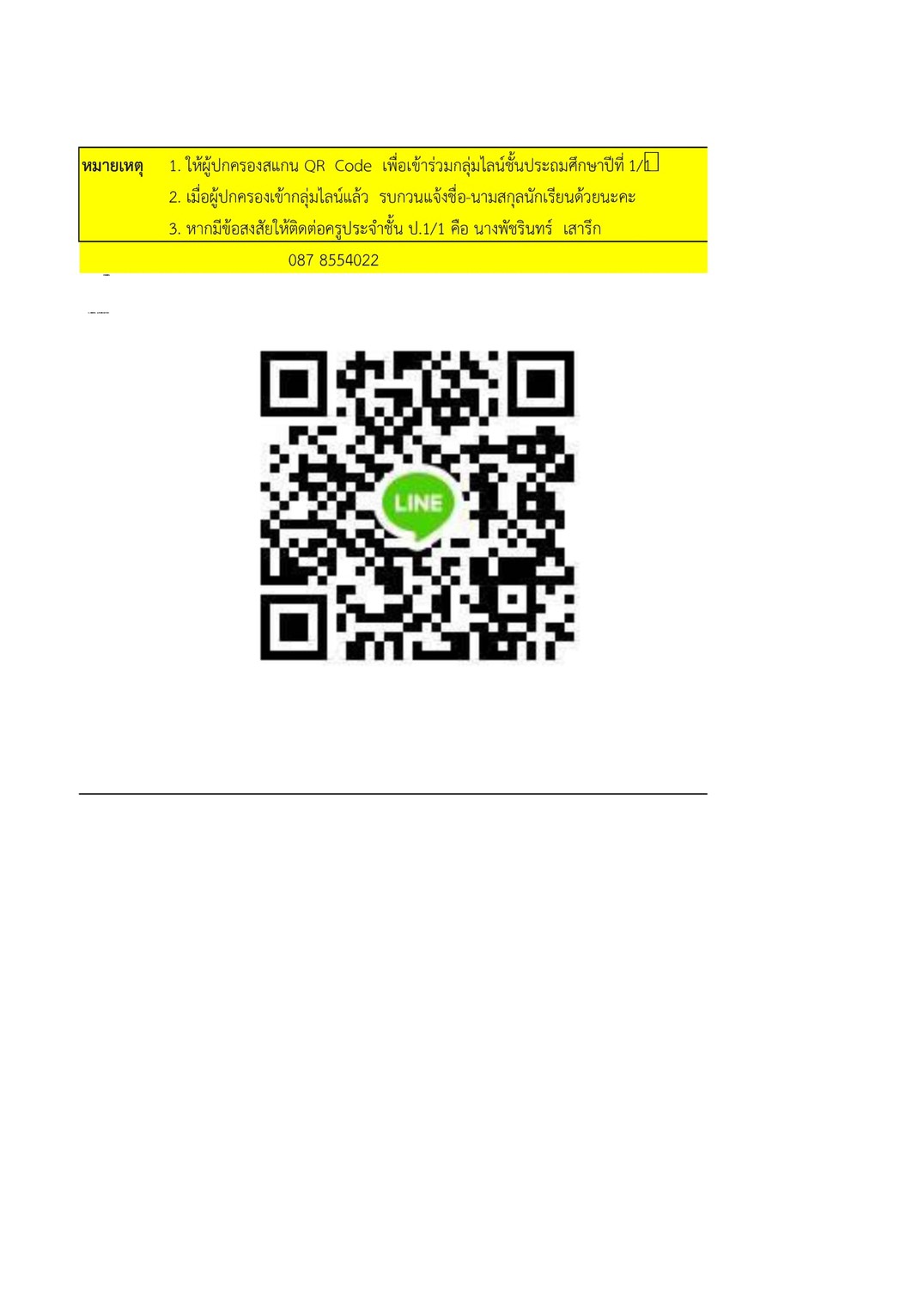 ประกาศรายชื่อนักเรียนระดับชั้นประถมศึกษาปีที่ 1 ปีการศึกษา 2569 (ห้องเรียนปกติ) ขอให้ผู้ปกครองตรวจสอบรายชื่อนักเรียนและสแกนเพื่อเข้ากลุ่ม LINE ครูประจำชั้นได้ตั้งแต่วันนี้เป็นต้นไป