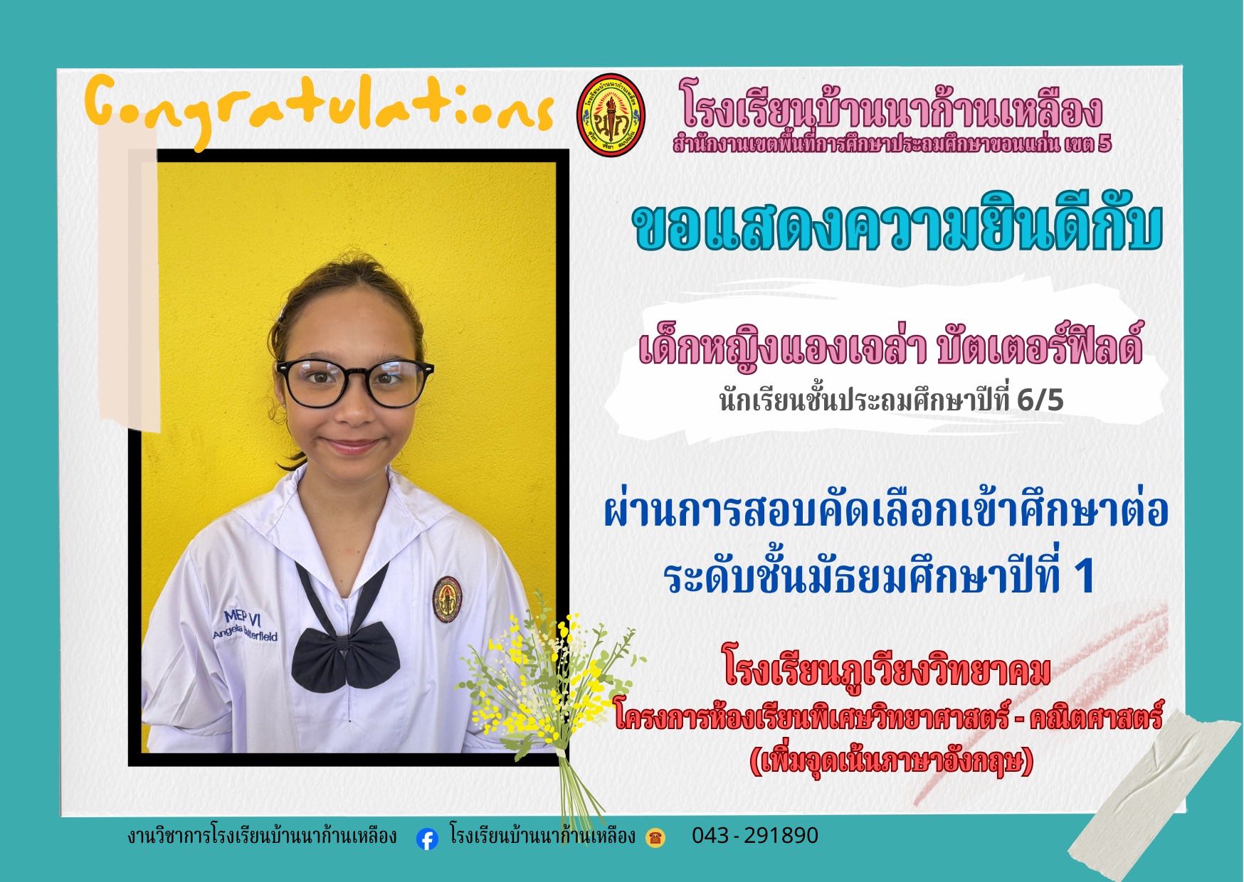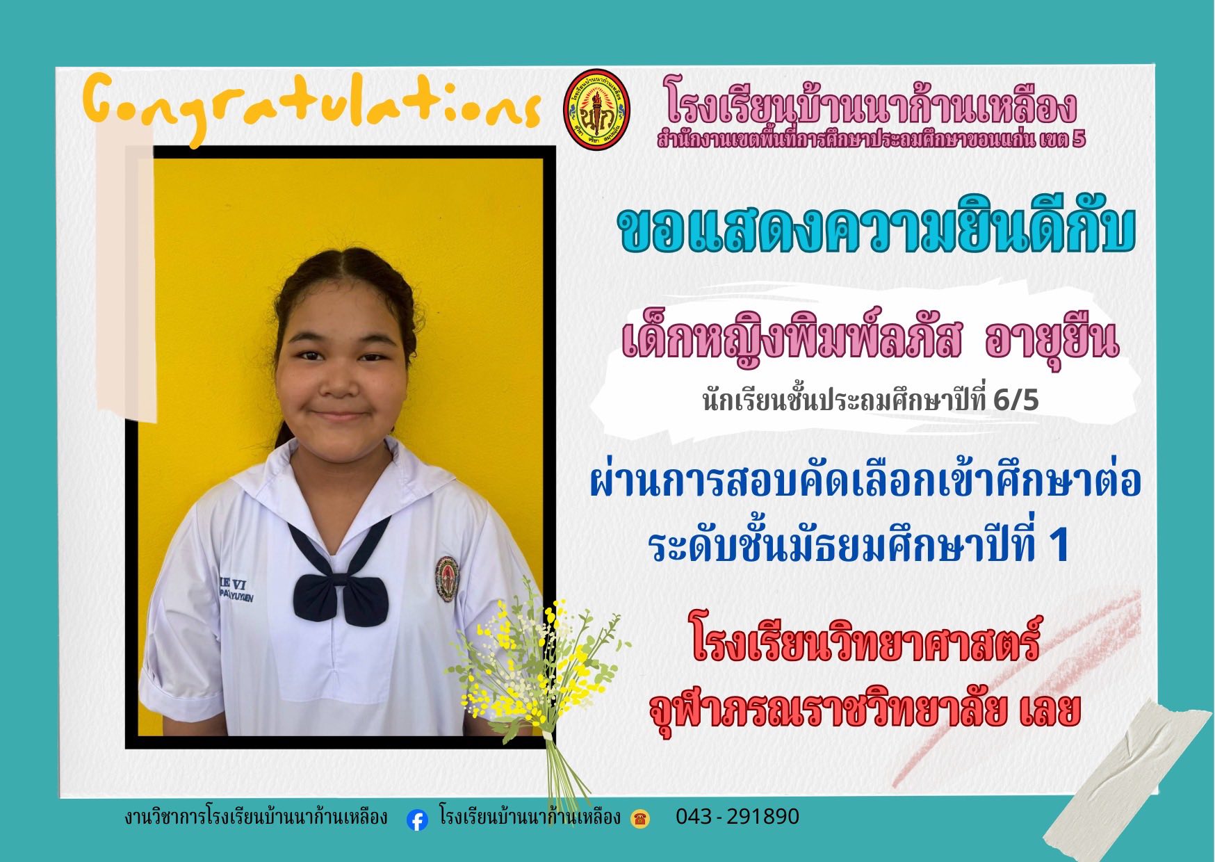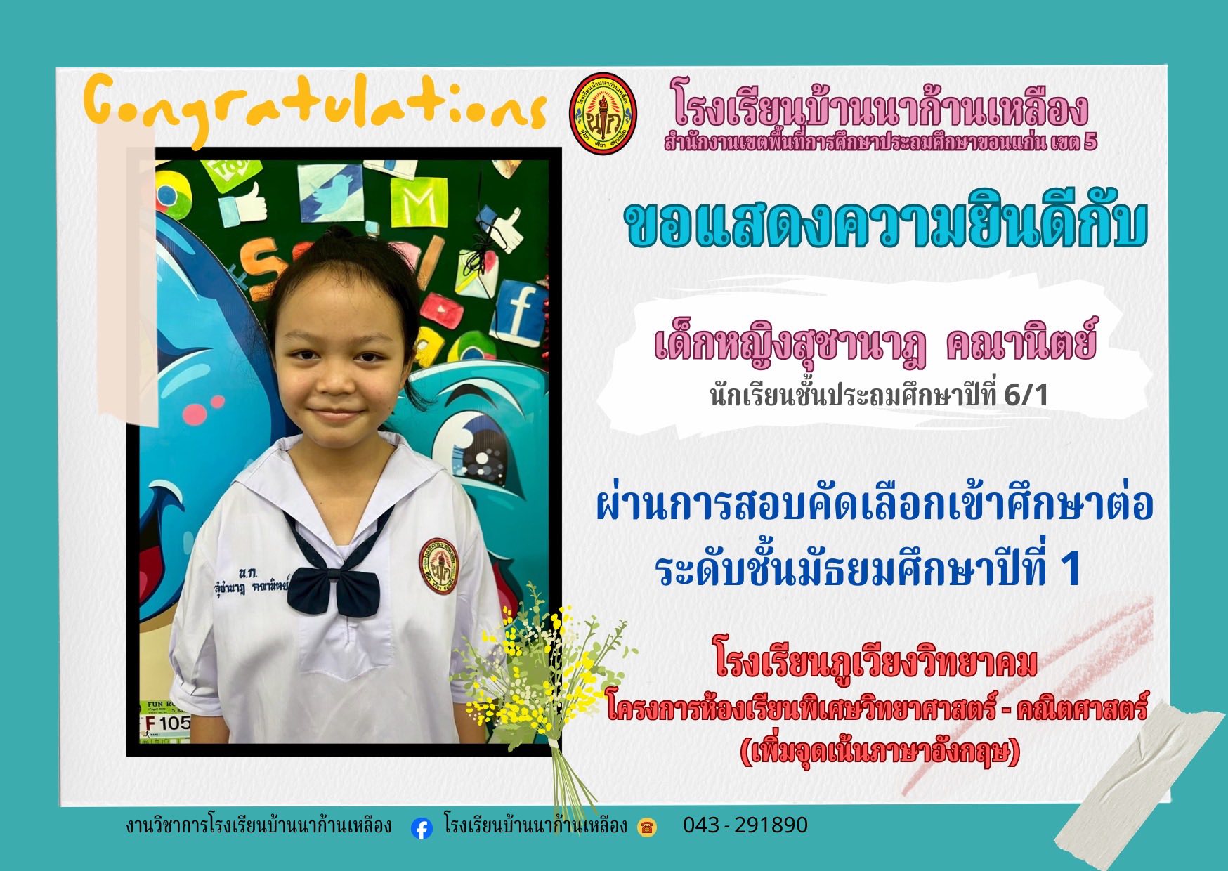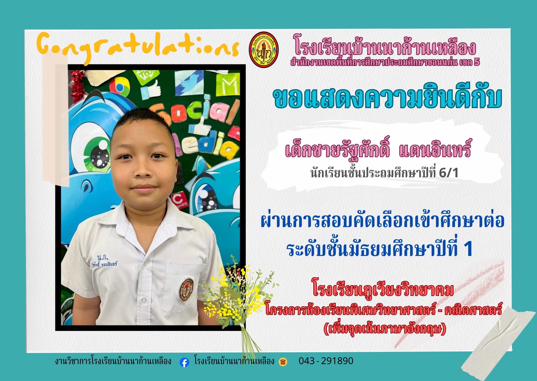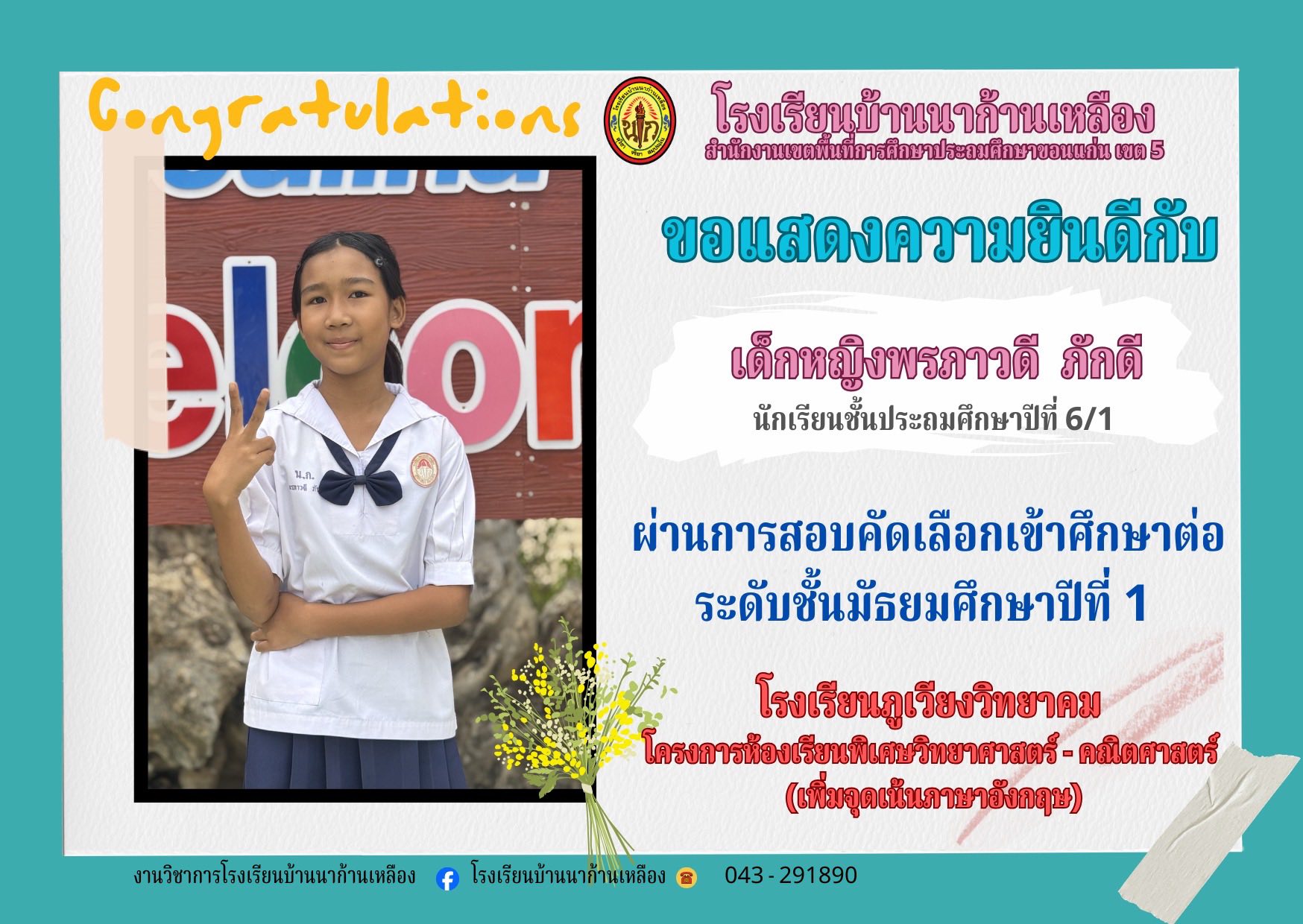 โรงเรียนบ้านนาก้านเหลือง ขอแสดงความยินดีกับนักเรียนคนเก่งในการสอบเรียนต่อระดับมัธยมศึกษา