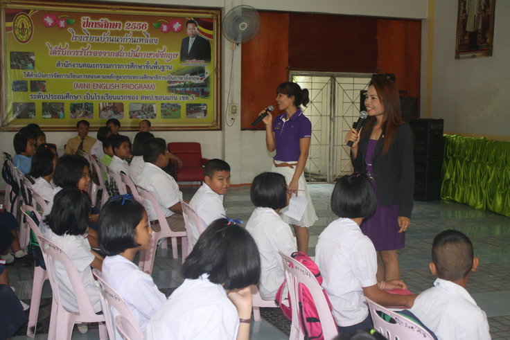 ศูนย์พัฒนาการเรียนการสอนภาษาอังกฤษ (PEER Center) อำเภอภูเวียง จัดกิจกรรมค่ายภาษาอังกฤษภาคฤดูร้อนของนักเรียนระดับชั้น ประถมศึกษาปีที่ 4 - 6 ในระหว่างวันที่ 6-7 มิถุนายน 2556 ณ โรงเรียนบ้านนาก้านเหลือง อำเภอภูเวียง จังหวัดขอนแก่น