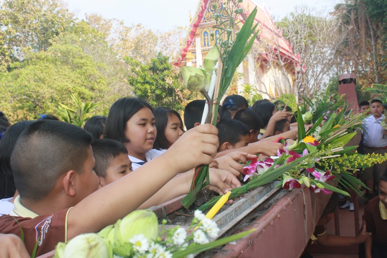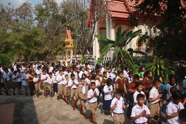 วันที่ 13 กุมภาพันธ์ 2557 โรงเรียนบ้านนาก้านเหลือง โดย นายธงชัย สุขสม ผู้อำนวยการโรงเรียน ดร.กมลวรรณ ศิริชัยโชค นายนิรุจน์ นครศรี รองผู้อำนวยการโรงเรียน พร้อมด้วยข้าราชการครูและบุคลากรทางการศึกษา นักเรียนระดับชั้นประถมศึกษาปีที่ 4-6 จัดกิจกรรมเวียนเทียนเนื่องในวันมาฆบูชา ณ วัดศรีภูเวียง อำเภอภูเวียง จังหวัดขอนแก่น