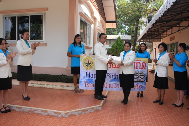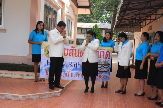 นายวีระศักดิ์ สาระผล ผู้อำนวยการโรงเรียนบ้านนาก้านเหลือง พร้อมด้วยรองผู้อำนวยการและคณะครู บุคลากรโรงเรียนบ้านนาก้านเหลือง ร่วมอวยพรและมอบของขวัญเนื่องในวันคล้ายวันเกิด คุณครูพรทิพย์ แก้วอุดทัง