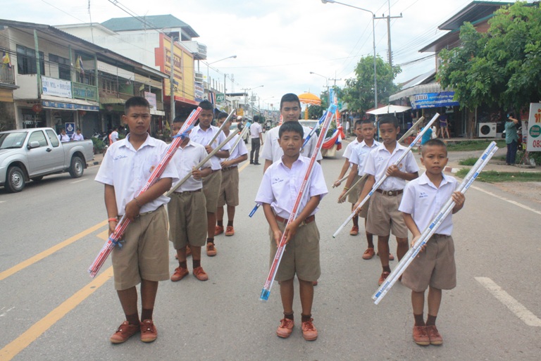 นายนิรุจน์ นครศรี รองผู้อำนวยการโรงเรียน ข้าราชการครูและบุคลากรทางการศึกษา นักเรียนโรงเรียนบ้านนาก้านเหลือง พร้อมด้วยข้าราชการตำรวจ สถานีตำรวจอำเภอภูเวียง ร่วมขบวนแห่เทียนพรรษา เนื่องในวันอาสาฬหบูชาและวันเข้าพรรษา ณ วัดโพธิ์ชัย อำเภอภูเวียง จังหวัดขอนแก่น