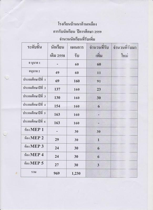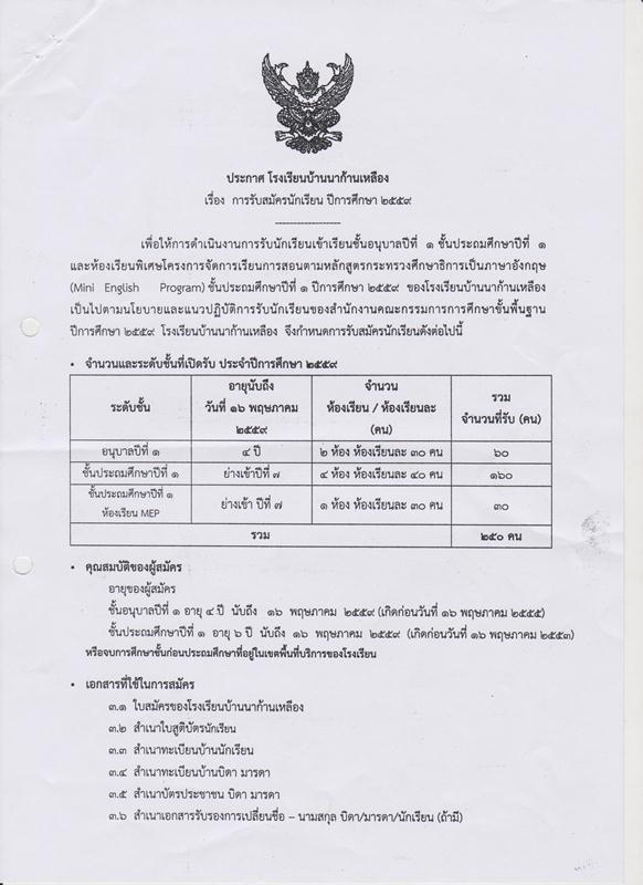 การรับสมัครนักเรียน ปีการศึกษา 2559