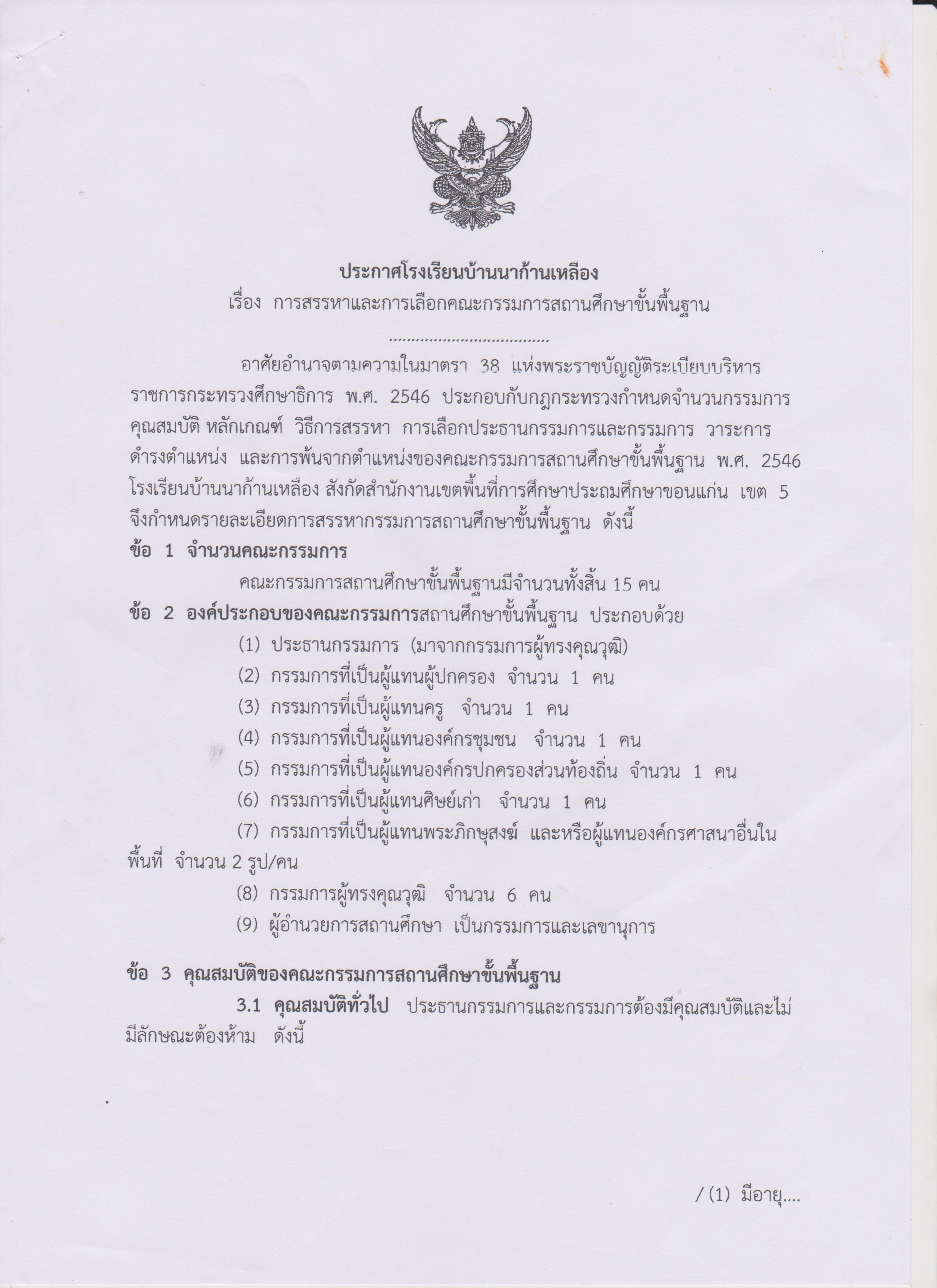 ประกาศโรงเรียนบ้านนาก้านเหลือง เรื่อง การสรรหาและการเลือกคณะกรรมการสถานศึกษาขั้นพื้นฐาน