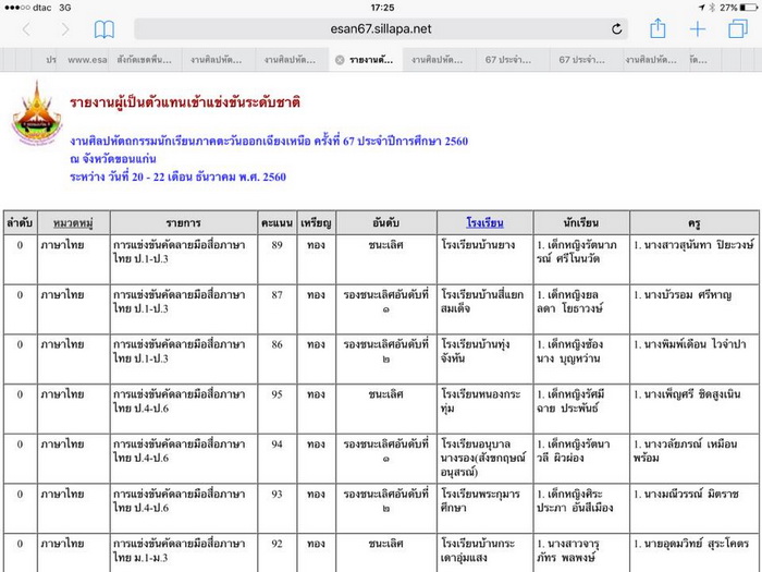 สรุปผลการแข่งขันงานศิลปหัตถกรรมนักเรียน ครั้งที่ 67 ระดับภาคตะวันออกเฉียงเหนือ โรงเรียนบ้านนาก้านเหลือง เข้าร่วมการแข่งขัน 11 รายการ ได้ 9 เหรียญทอง 1 เหรียญทองแดง และ 1 เข้าร่วม และมี 2 กิจกรรมผ่านเข้าไปแข่งในระดับประเทศ คือ กิจกรรมการแข่งขันรำวงมาตรฐาน ระดับชั้น ป.1-6 และกิจกรรมการแข่งขันการสร้างเกมสร้างสรรค์จากคอมพิวเตอร์ ระดับชั้น ป.4-6