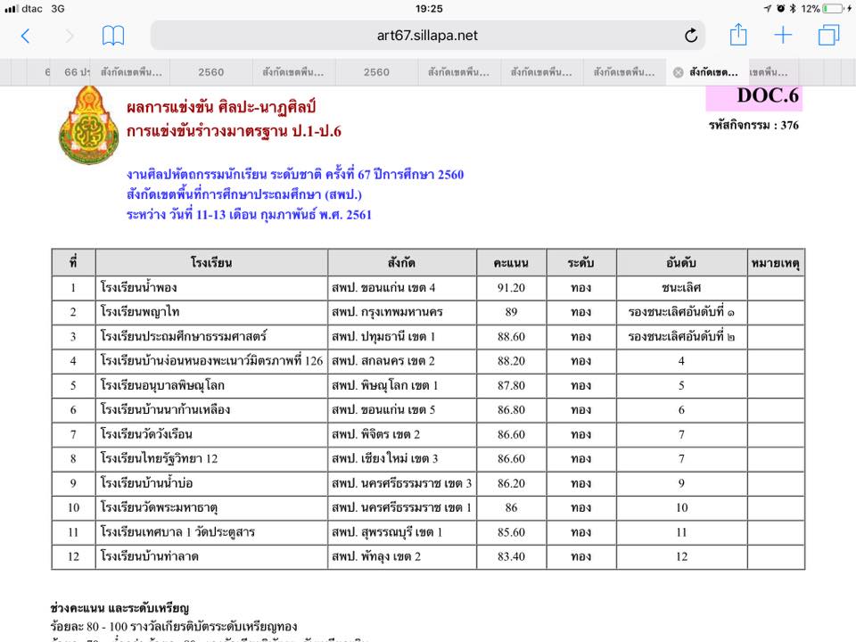 ผลการแข่งขันงานศิลปหัตถกรรมนักเรียน ครั้งที่ 67 ระดับประเทศ
