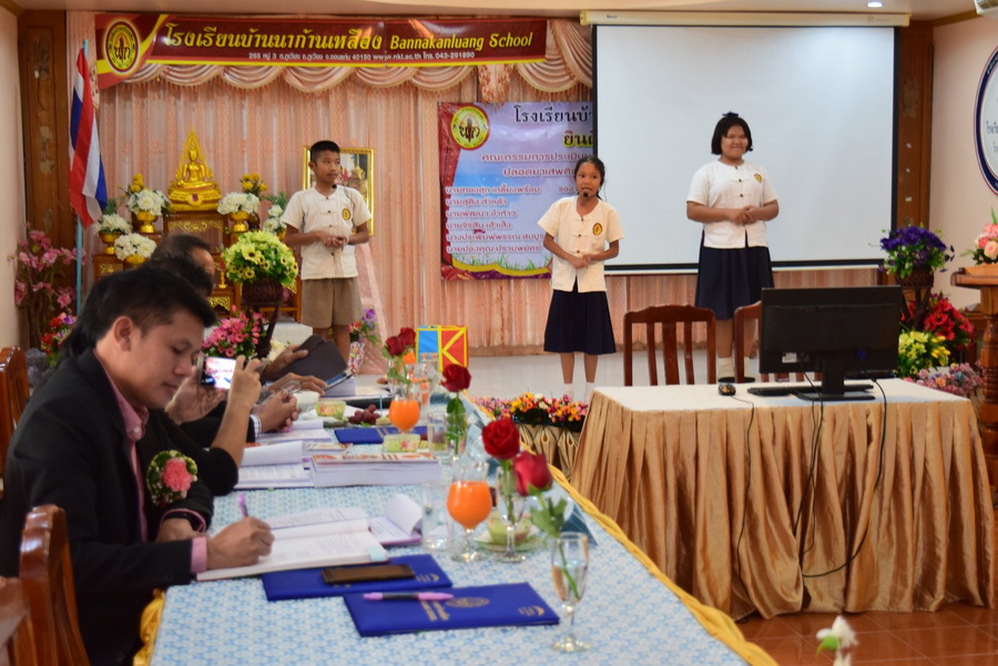 โรงเรียนบ้านนาก้านเหลือง นำโดย นายธงชัย สุขสม ผู้อำนวยการโรงเรียน นางนฤมล เวียงยศ และนายปราโมทย์ ศรีชมชื่น รองผู้อำนวยการโรงเรียน พร้อมด้วยข้าราชการครูและบุคลากรทางการศึกษา ร่วมยินดีต้อนรับคณะกรรมการ ประเมินโครงการสถานศึกษาสีขาว ระดับ เพชร นำโดย นายทองสุก เกลี้ยงพร้อม รองผู้อำนวยการสำนักงานเขตพื้นที่การศึกษาประถมศึกษาขอนแก่น เขต 5 และคณะ ด้วยความยินดียิ่ง