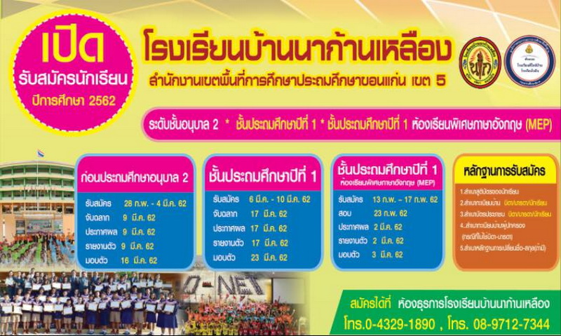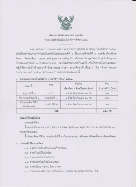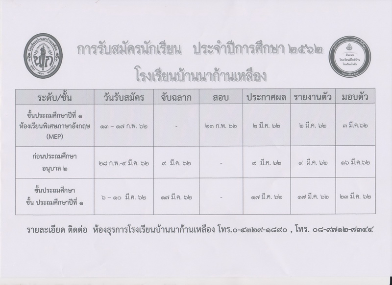 ประกาศโรงเรียนบ้านนาก้านเหลือง เรื่อง รับสมัครนักเรียน ปีการศึกษา 2562