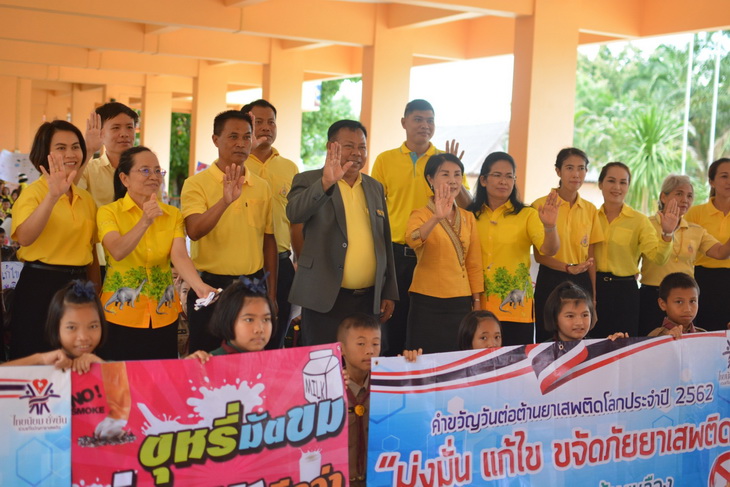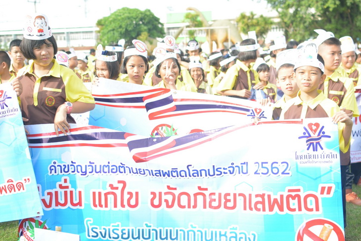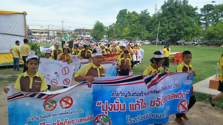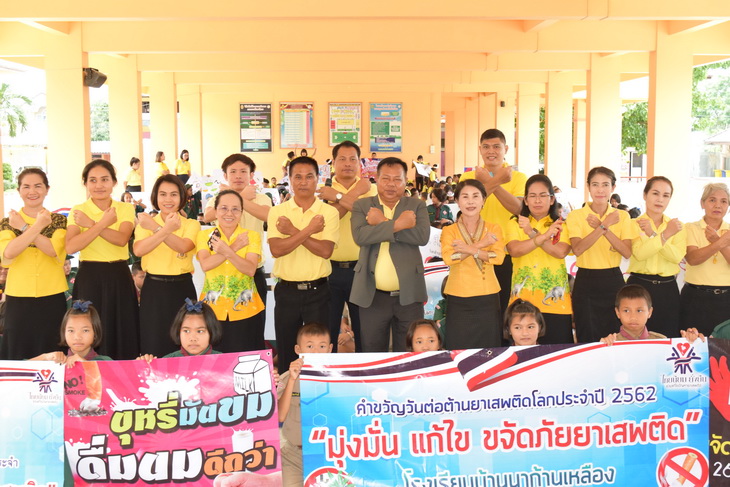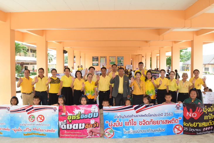 วันที่ 26 มิถุนายน 2562 โรงเรียนบ้านนาก้านเหลืองร่วมกับหน่วยงานราชการ รัฐวิสาหกิจ โรงเรียนในเขตอำเภอภูเวียงร่วมเดินรณรงค์ต่อต้านยาเสพติดในเขตเทศบาลตำบลภูเวียง และนำนักเรียนระดับชั้นประถมศึกษาปีที่ 4-6 กล่าวคำปฏิณาณตน ต่อต้านยาเสพติด นอกจากนี้คณะครูและนักเรียนออกรณรงค์จัดทิทรรศการต่อต้านยาเสพติดใน 11 ตำบลในเขตอำเภอภูเวียง จังหวัดขอนแก่น