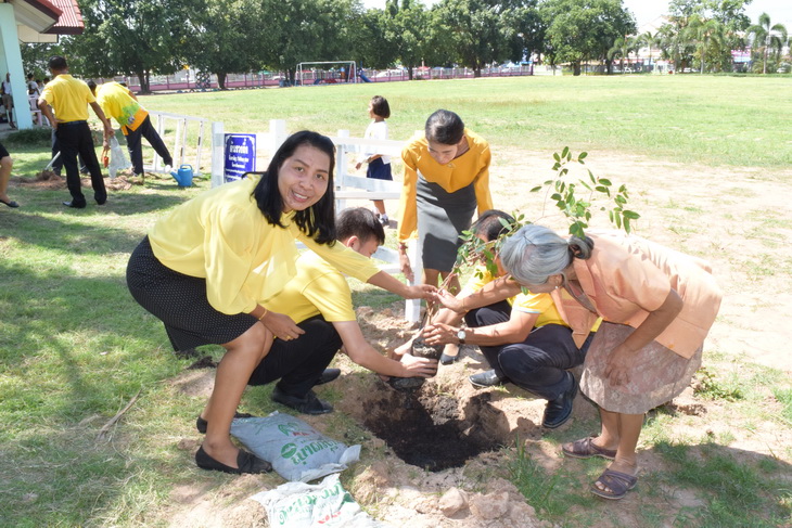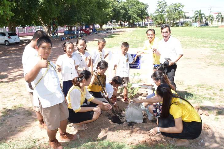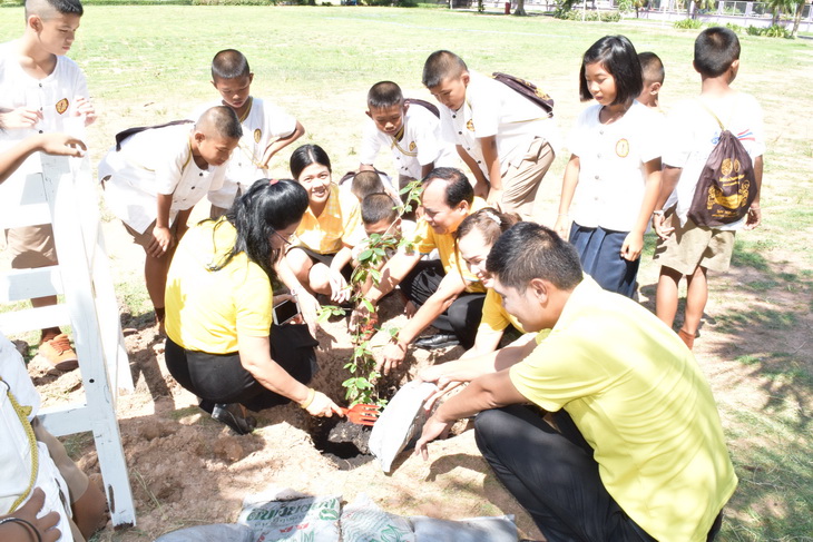 ผู้บริหาร ข้าราชการครูและบุคลากรทางการศึกษาร่วมปลูกต้นไม้เฉลิมพระเกียรติเนื่องในโอกาสมหามงคลพระราชพิธีบรมราชาภิเษก ในหลวงรัชกาลที่ ๑๐