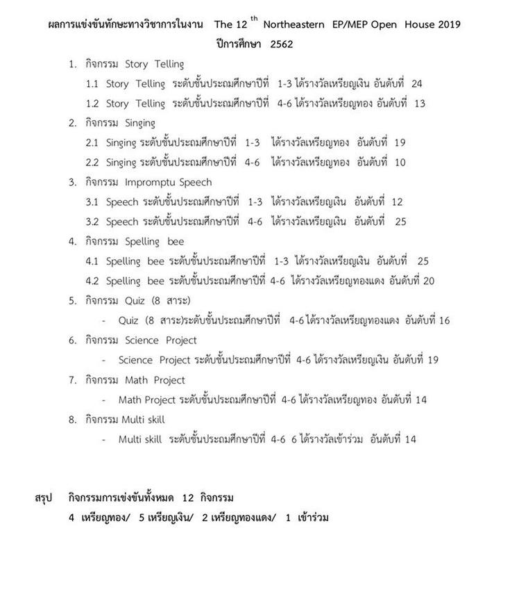 วันที่ 19 - 20 สิงหาคม 2562 โรงเรียนบ้านนาก้านเหลืองเข้าร่วมในกิจกรรมการแข่งขันทักษะทางวิชาการ EP/MEP OPEN HOUSE 2019
