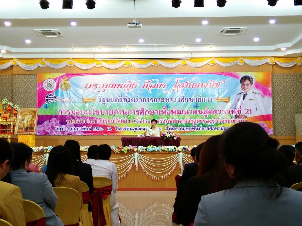 ดร.คุณหญิงกัลยา โสภณพนิชรัฐมนตรีช่วยว่าการกระทรวงศึกษาธิการมอบนโยบายด้านการศึกษาเพื่อพัฒนาคนสู่ศตวรรษ ที่ 21หนุนเด็กไทยได้เรียนโค้ดดิ้งณ โรงเรียนภูเวียงวิทยาคม อำเภอภูเวียง จังหวัดขอนแก่น