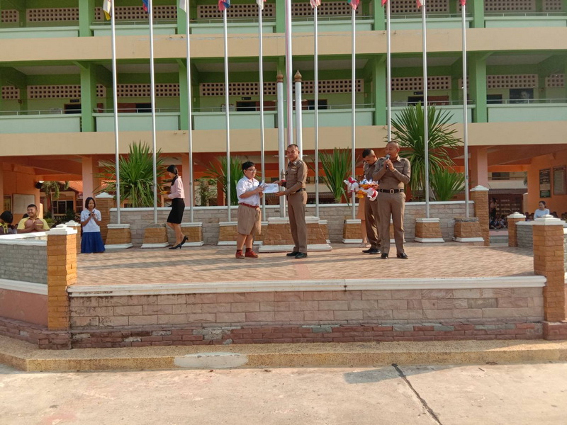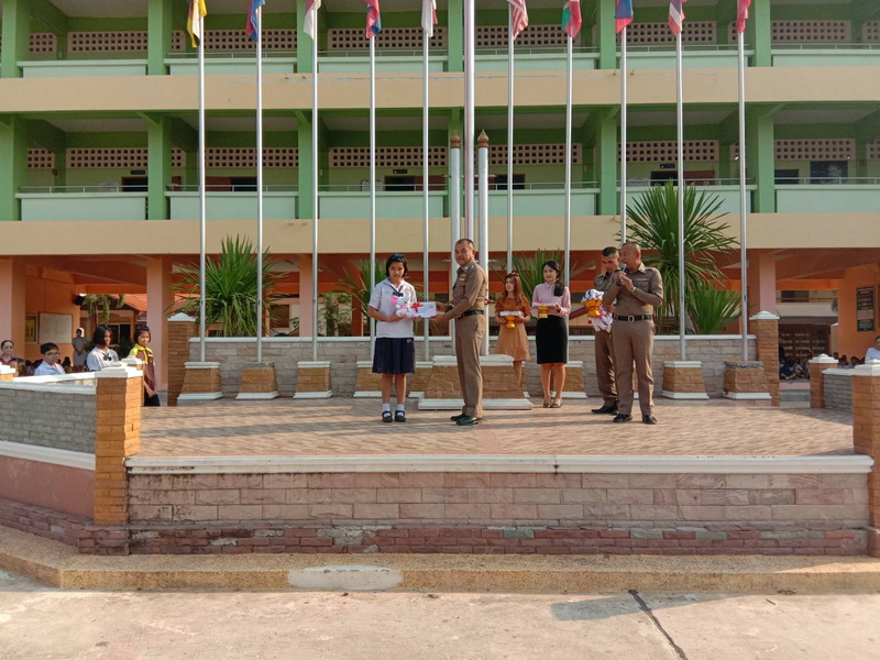 กิจกรรมมอบเกียรติบัตร นักเรียนที่ผ่านหลักสูตรโครงการ การศึกษาเพื่อต่อต้านการใช้ยาเสพติดในเด็กนักเรียน D.A.R.E. โดย สถานีตำรวจภูธร อำเภอภูเวียง