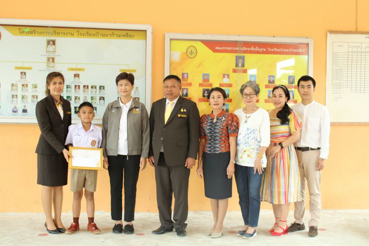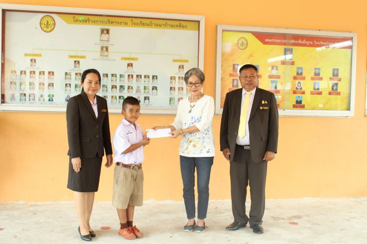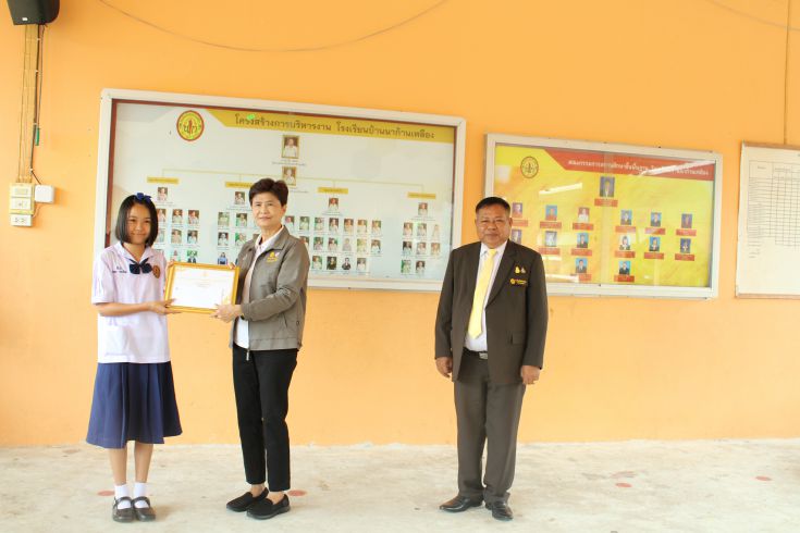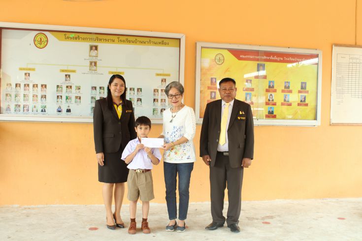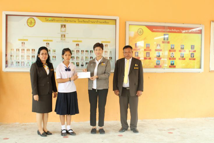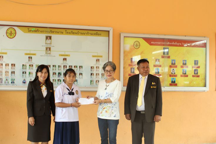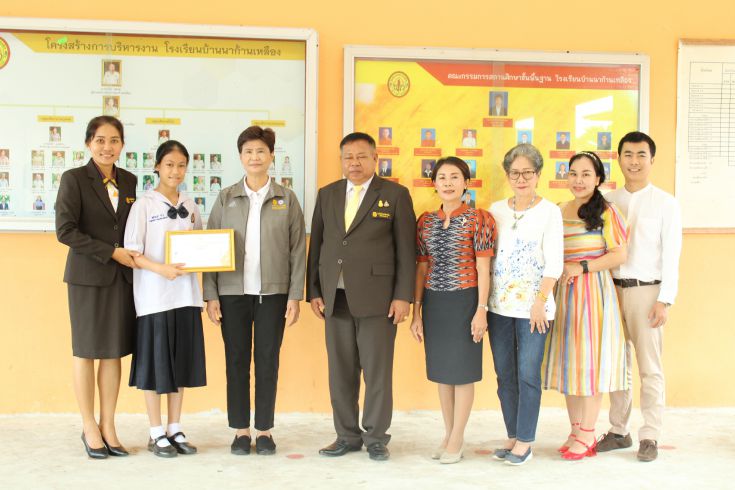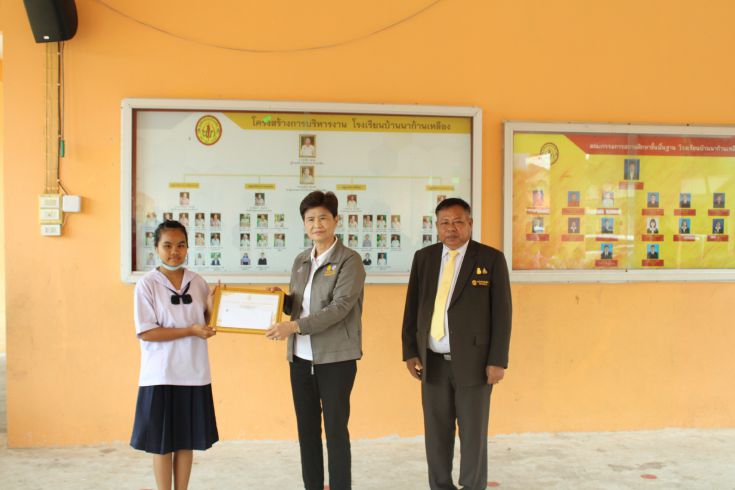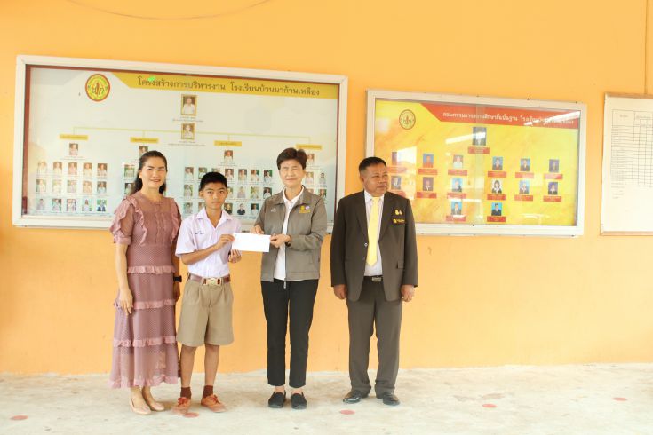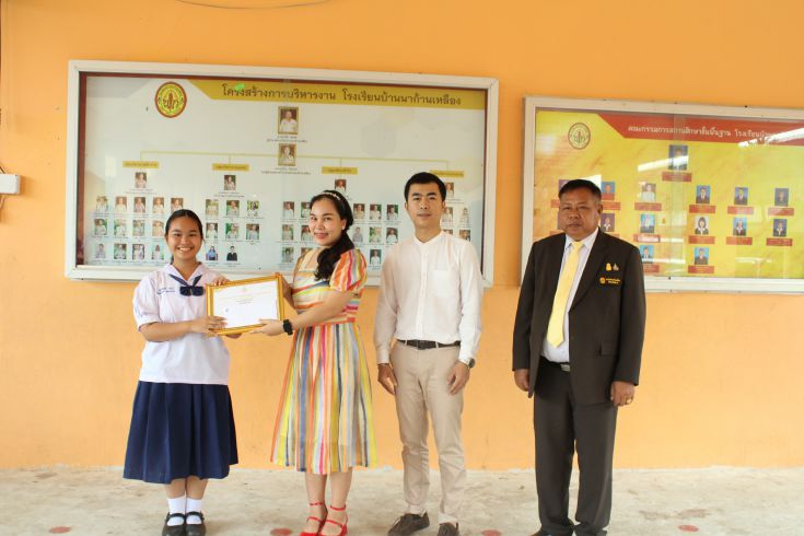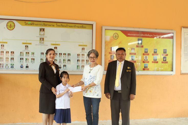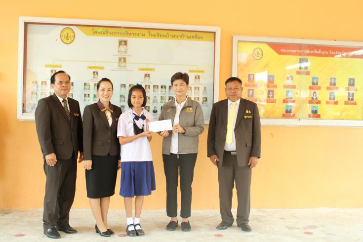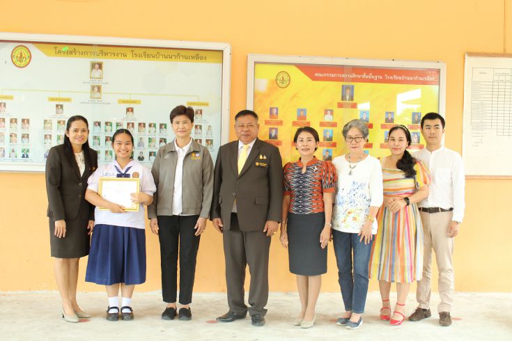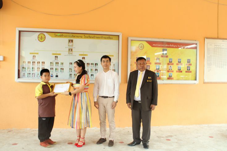 ได้รับเกียรติจาก นางวิภา เรืองประเสริฐกุล ประธานคณะกรรมการสถานศึกษาขั้นพื้นฐานโรงเรียนบ้านนาก้านเหลือง ร้านน้องส้ม ภูเวียงเครื่องเขียน และคณะครูร่วมมอบทุนการศึกษาให้กับนักเรียน