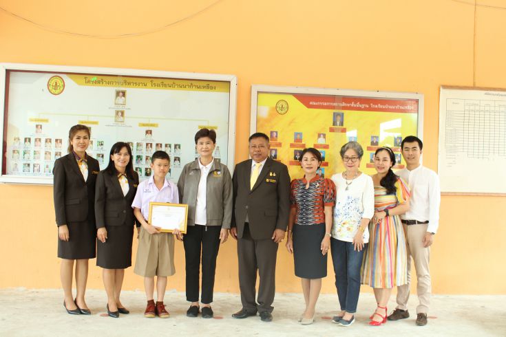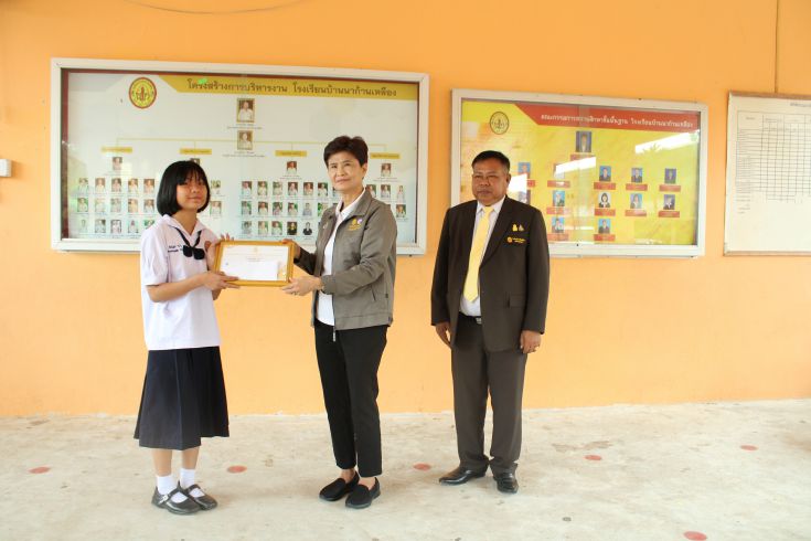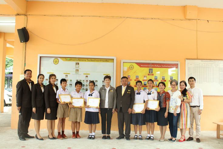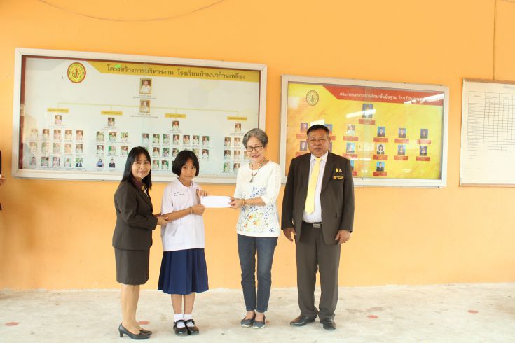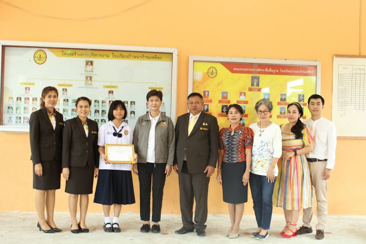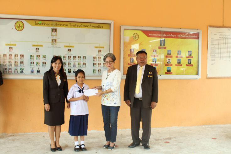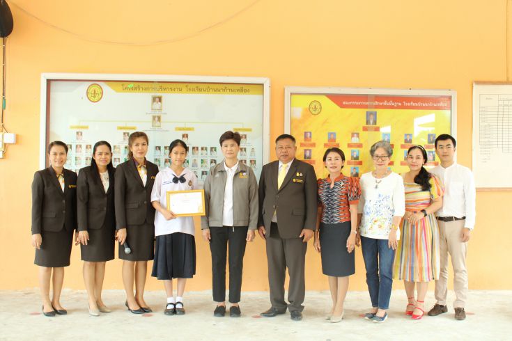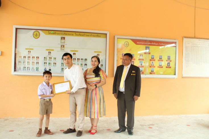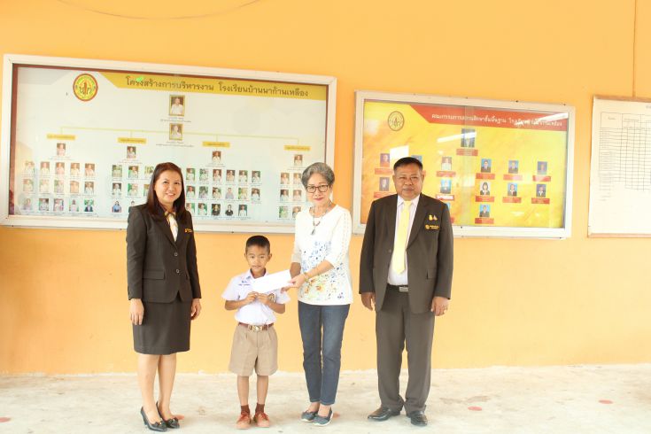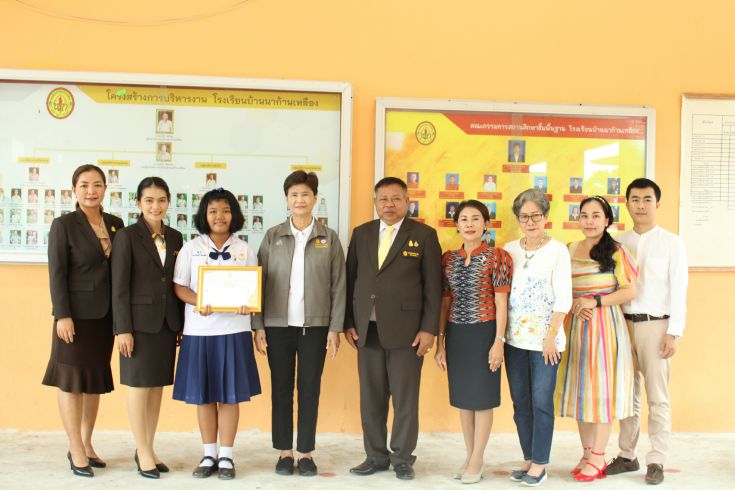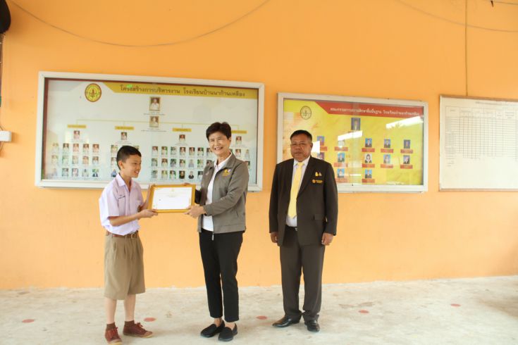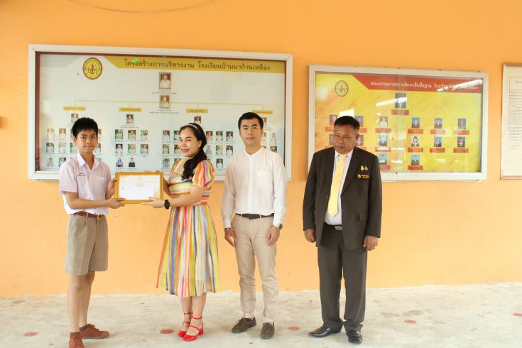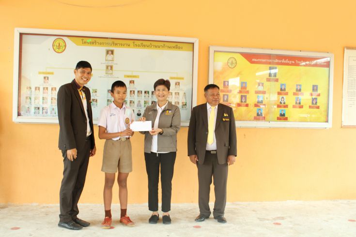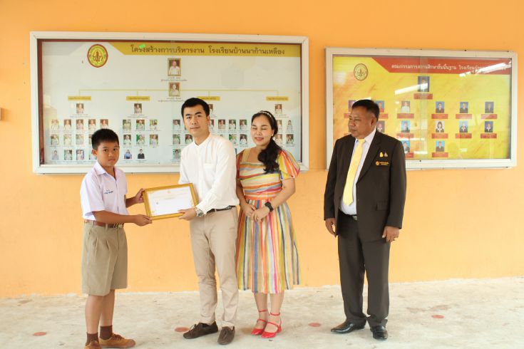 ได้รับเกียรติจาก นางวิภา เรืองประเสริฐกุล ประธานคณะกรรมการสถานศึกษาขั้นพื้นฐานโรงเรียนบ้านนาก้านเหลือง ร้านน้องส้ม ภูเวียงเครื่องเขียน และคณะครูร่วมมอบทุนการศึกษาให้กับนักเรียน