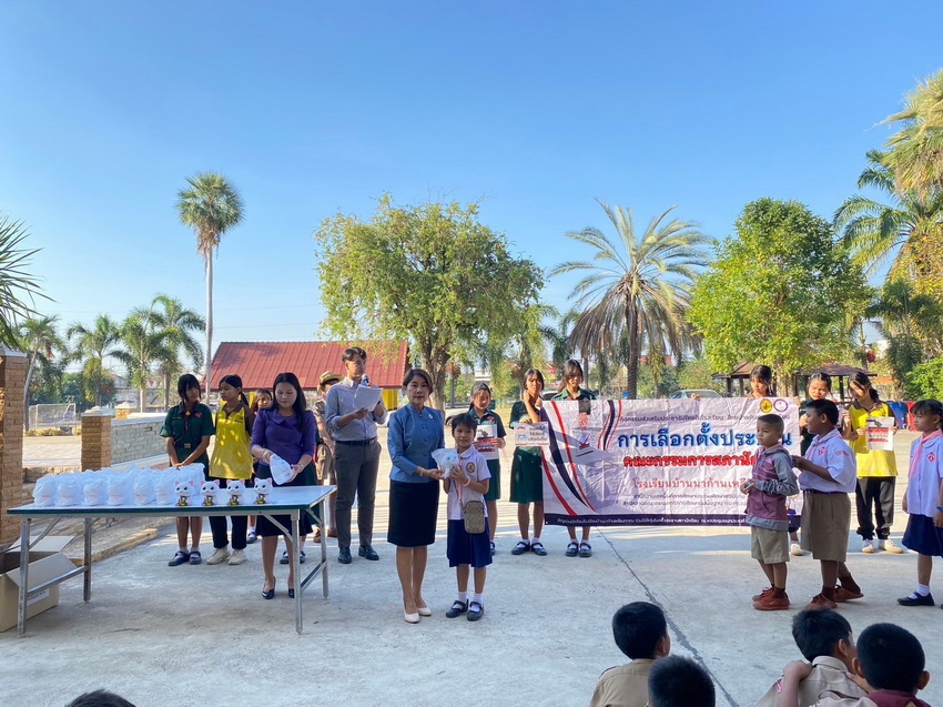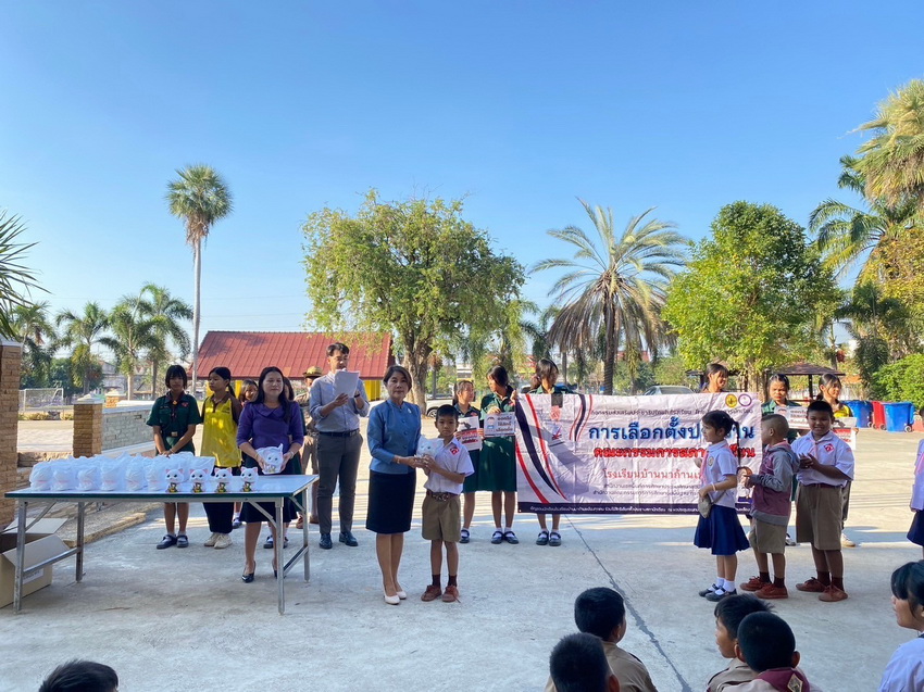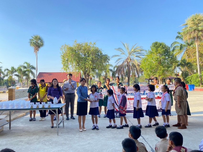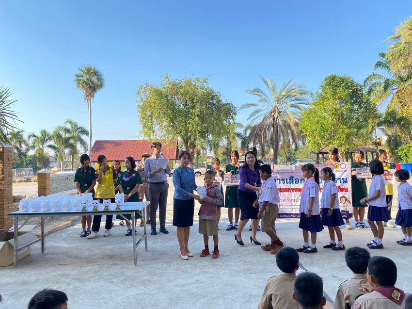 วันพุธที่ 21 กุมภาพันธ์ 2567 ธนาคารเพื่อการเกษตรและสหกรณ์การเกษตร ธ.ก.ส. ส่งมอบความสุขให้นักเรียนก่อนปิดเทอม ด้วยการมอบกระปุกออมสินให้กับนักเรียนโรงเรียนบ้านนาก้านเหลืองที่มียอดออมเงินสูงสุดตลอดปี 2566