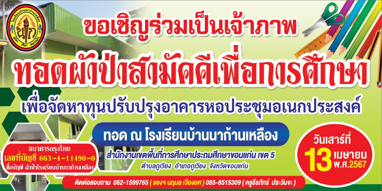 ชื่อบัญชี ผ้าป่าโรงเรียนบ้านนาก้านเหลือง