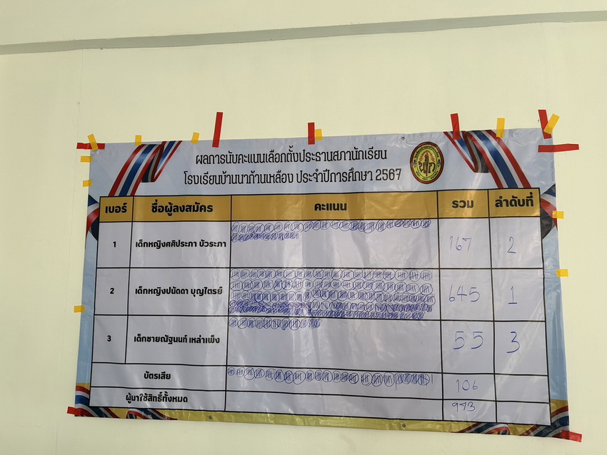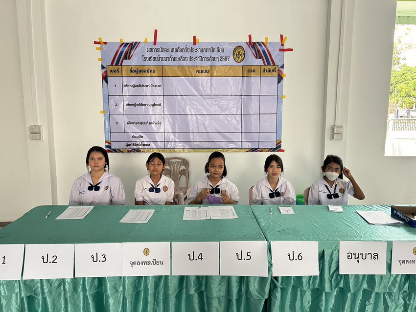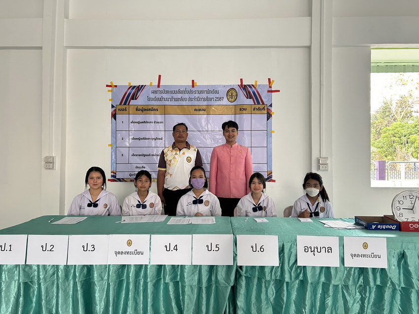 จัดกิจกรรมเลือกตั้งประธานนักเรียนประจำปีการศึกษา 2567 ผลการเลือกตั้ง เบอร์ 2 เด็กหญิงปนัดดา บุญไตรย์ ชั้น ป.5/1 ได้รับเลือกเป็นประธานนักเรียน ประจำปีการศึกษา 2567 ด้วยคะแนนเสียง 645 เสียง จากนักเรียนทั้งหมด 1052 คน