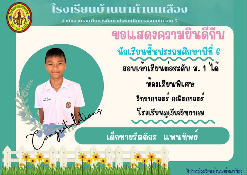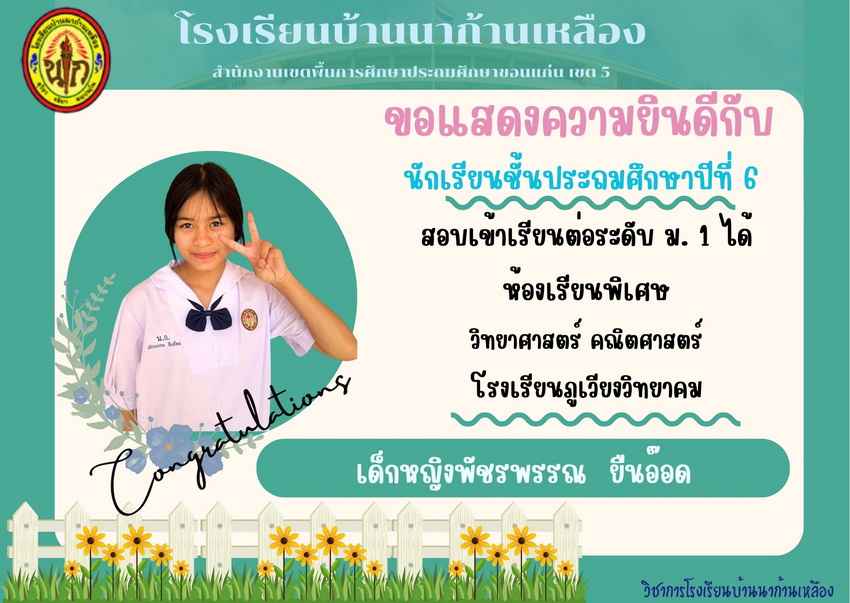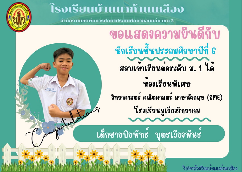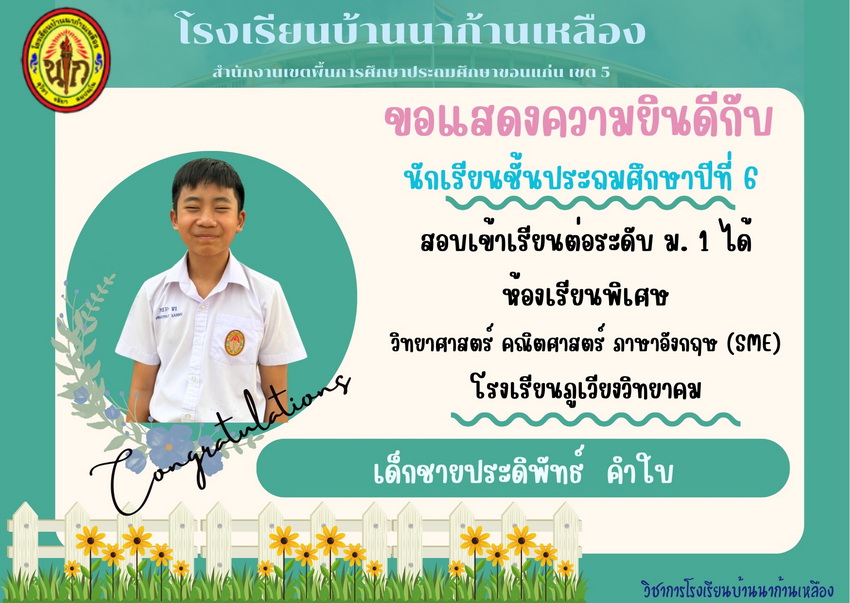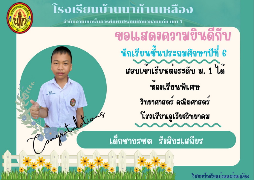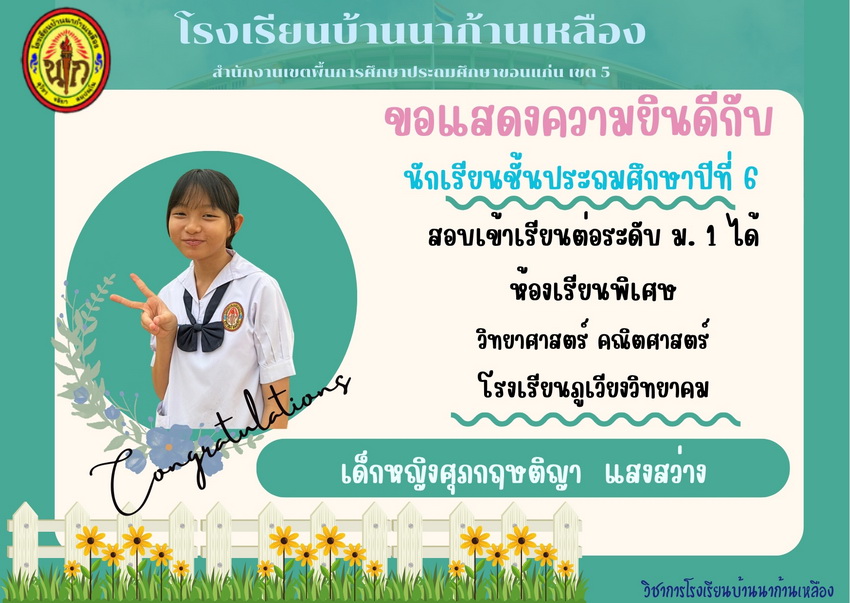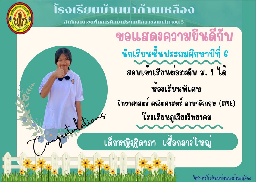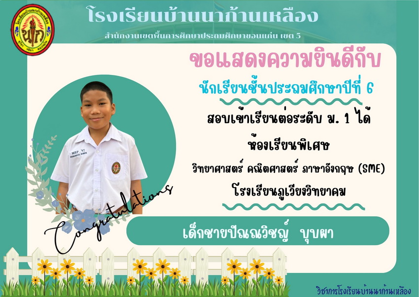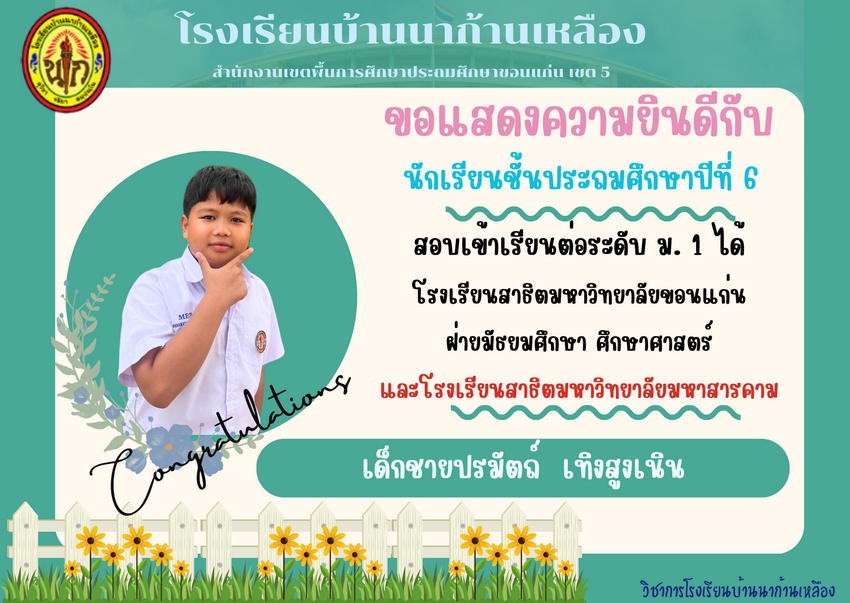 แสดงความยินดีกับนักเรียนที่สอบเข้าเรียนต่อระดับชั้นมัธยมศึกษาปีที่ 1 ปีการศึกษา 2567