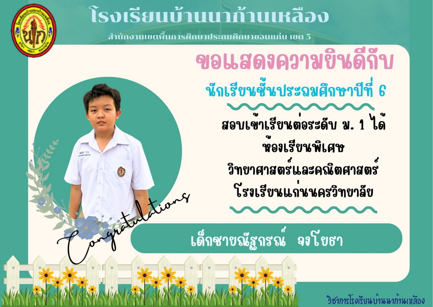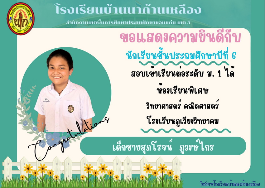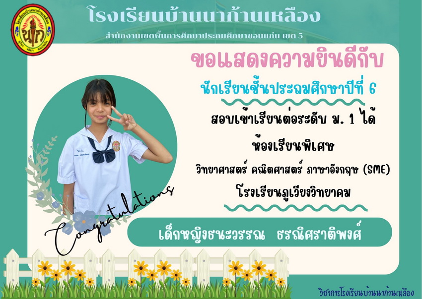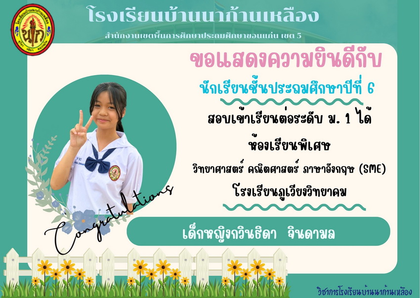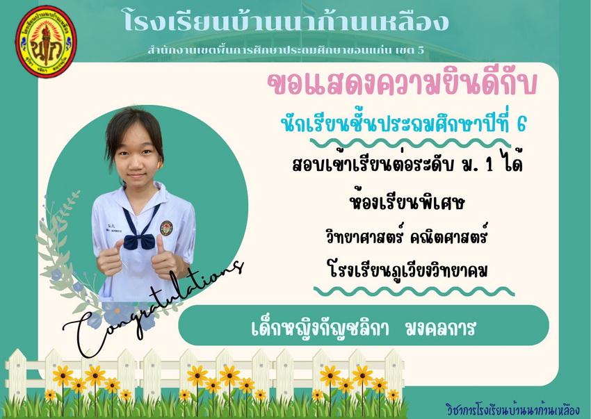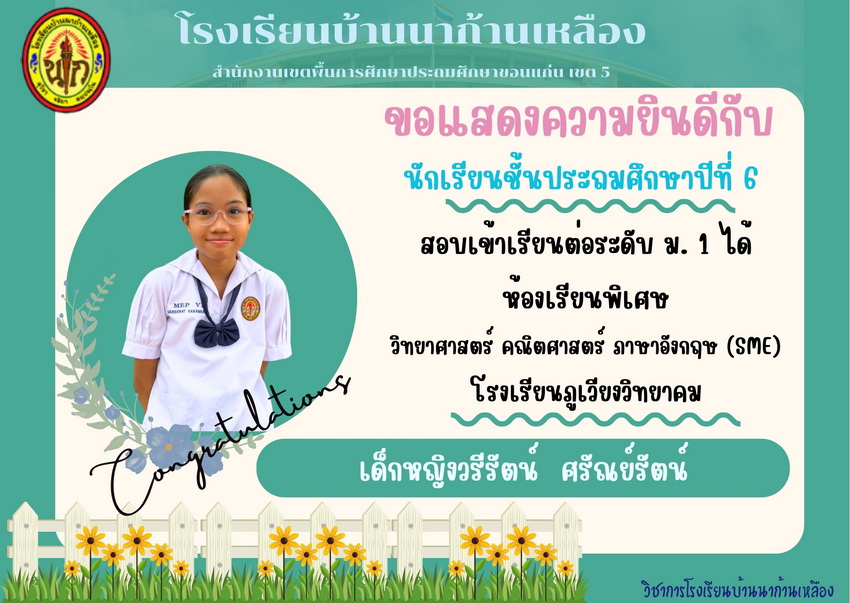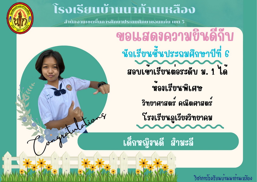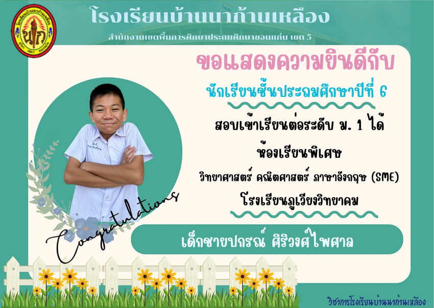 แสดงความยินดีกับนักเรียนที่สอบเข้าเรียนต่อระดับชั้นมัธยมศึกษาปีที่ 1 ปีการศึกษา 2567