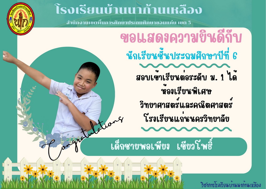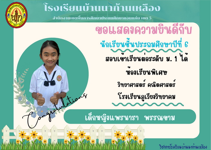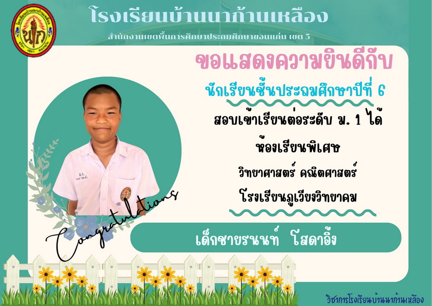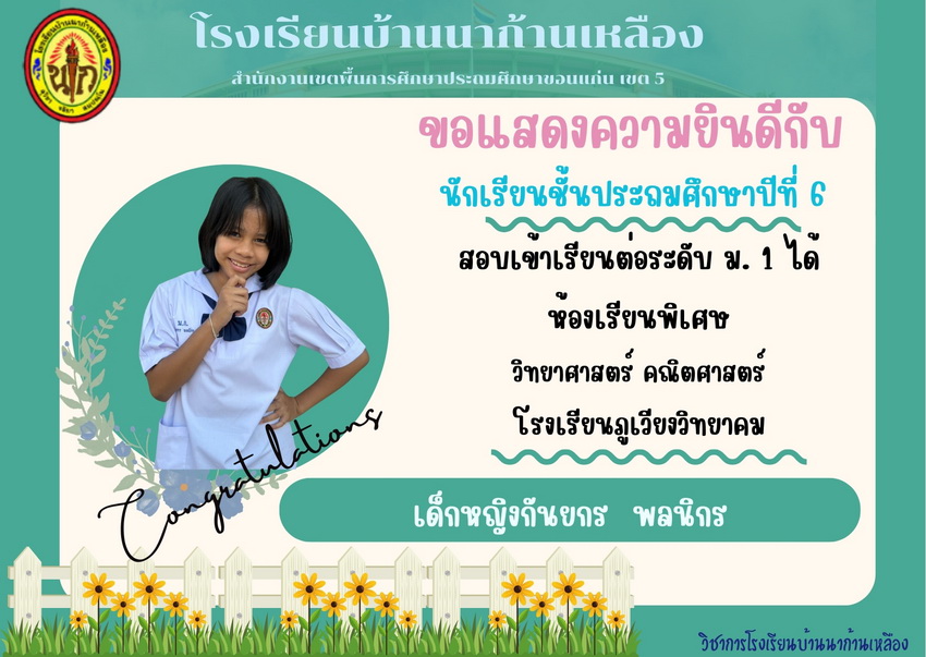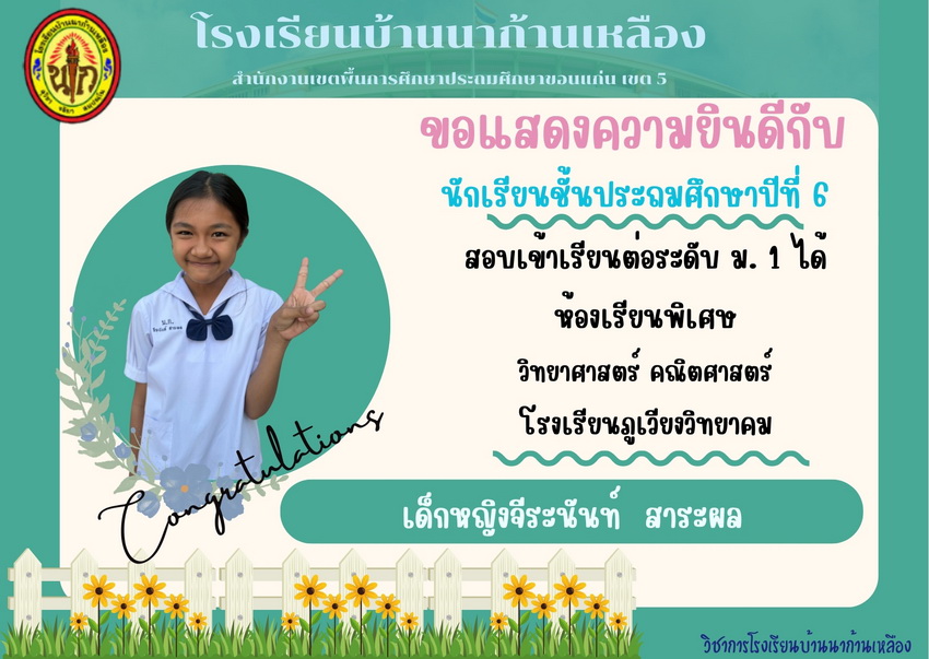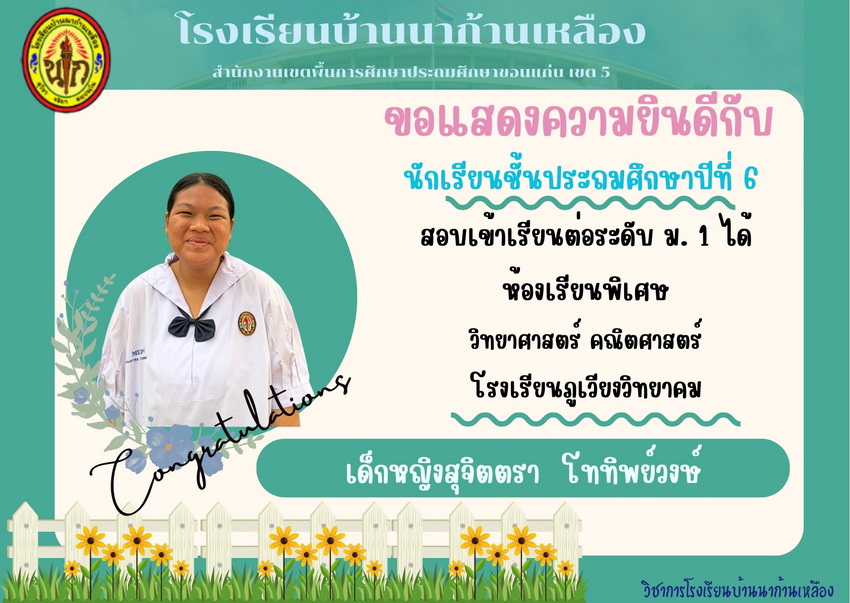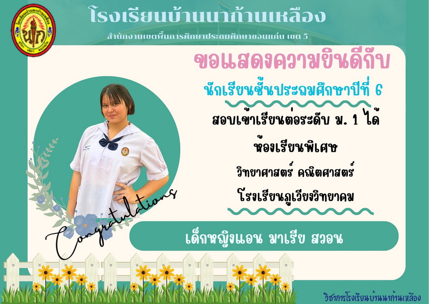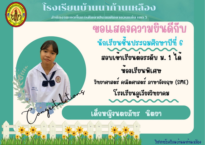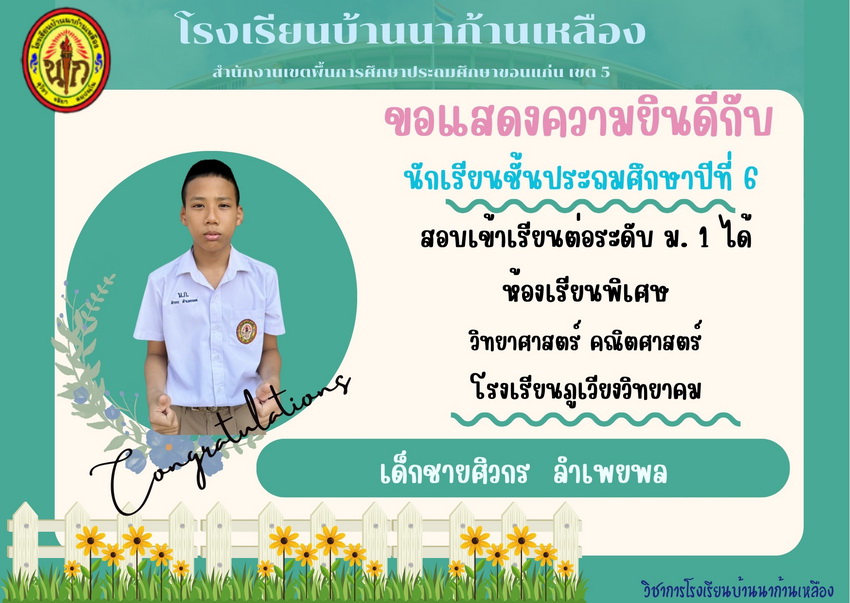 แสดงความยินดีกับนักเรียนที่สอบเข้าเรียนต่อระดับชั้นมัธยมศึกษาปีที่ 1 ปีการศึกษา 2567