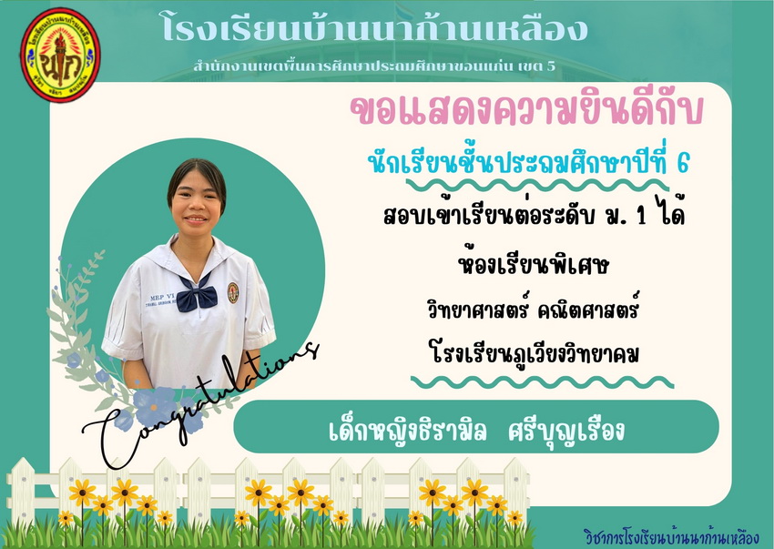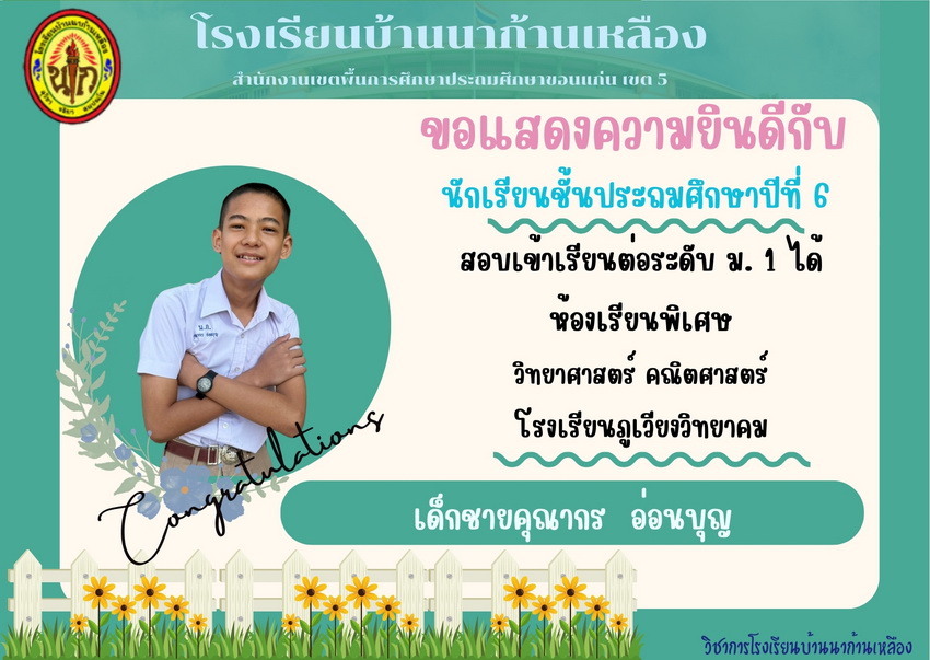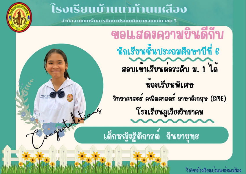 ขอแสดงความยินดีกับนักเรียนที่สอบเข้าเรียนต่อระดับชั้นมัธยมศึกษาปีที่ 1 ได้
