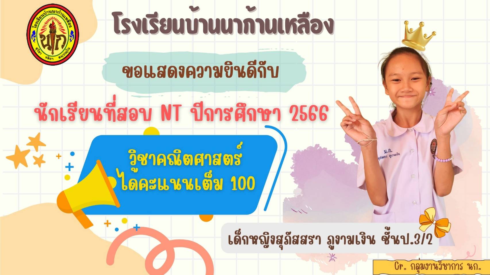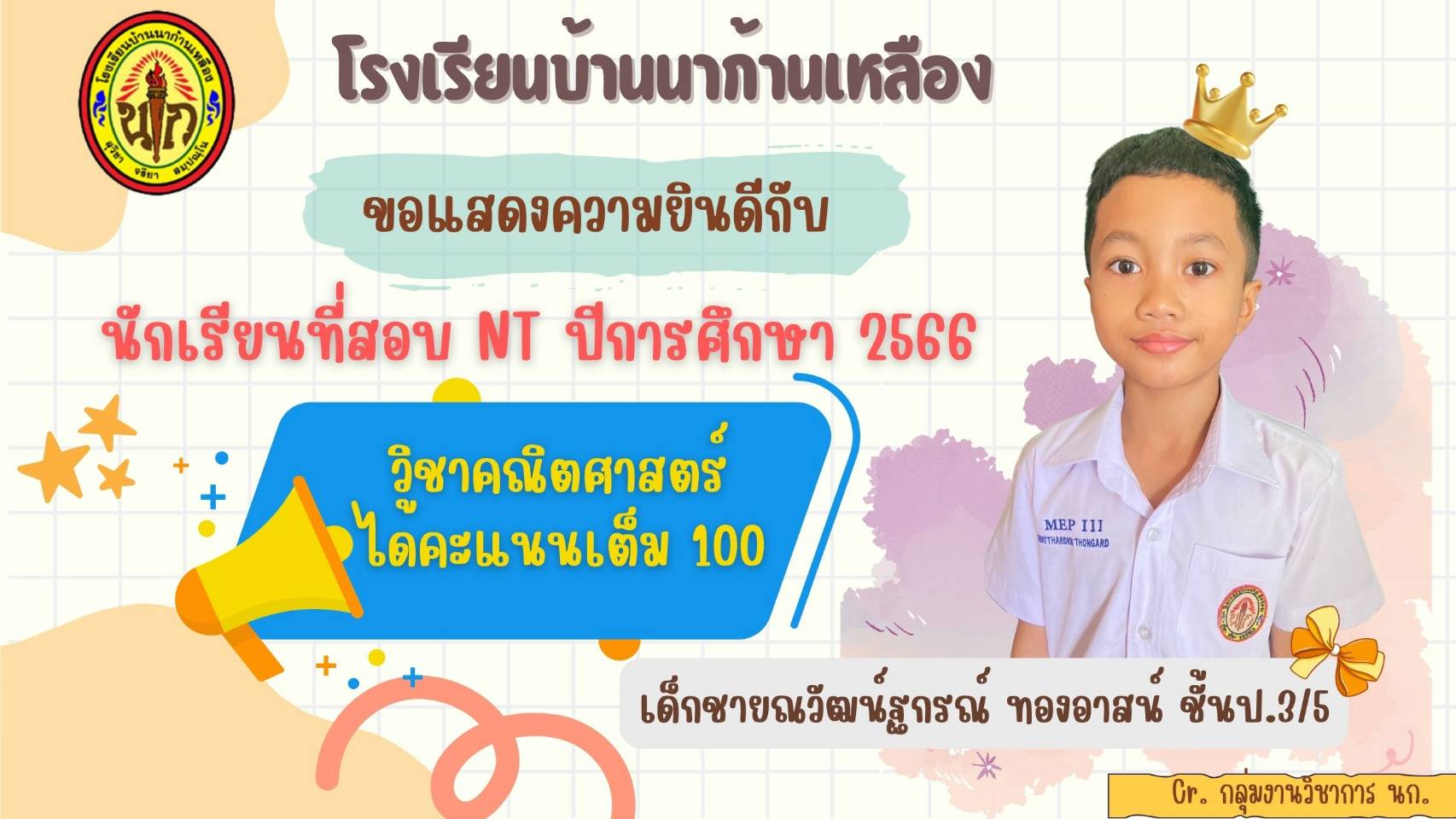 ขอแสดงความยินดี นักเรียนที่มีผลการทดสอบการประเมินคุณภาพผู้เรียน นักเรียน National Test (NT) คือการทดสอบความสามารถพื้นฐาน