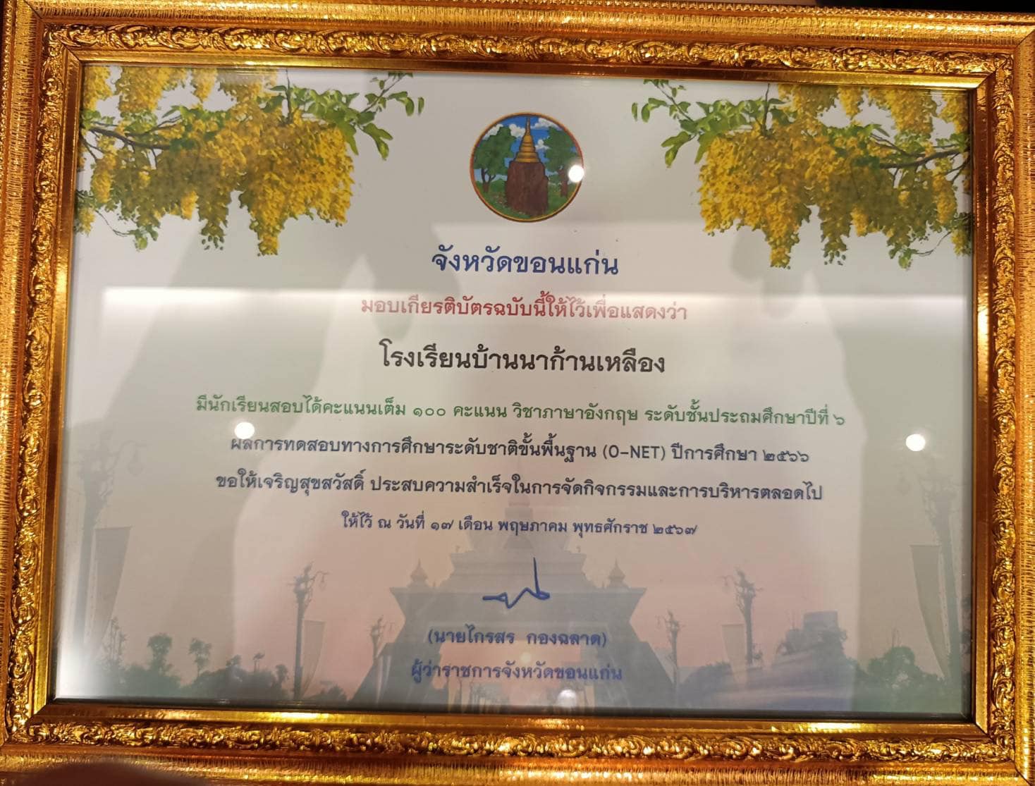 รับมอบเกียรติบัตร โรงเรียนและนักเรียนที่มีผลการสอบ O-NET เต็ม 100 ภาษาอังกฤษ