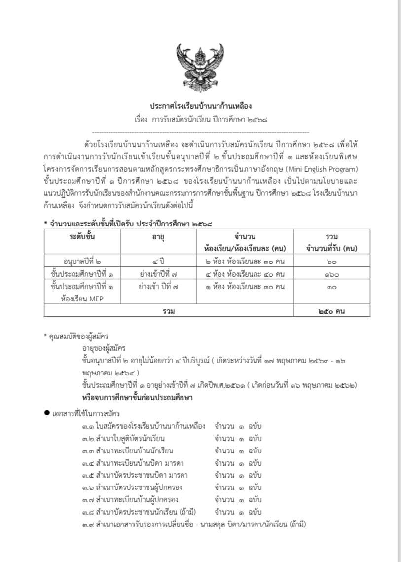 ประกาศโรงเรียนบ้านนาก้านเหลือง