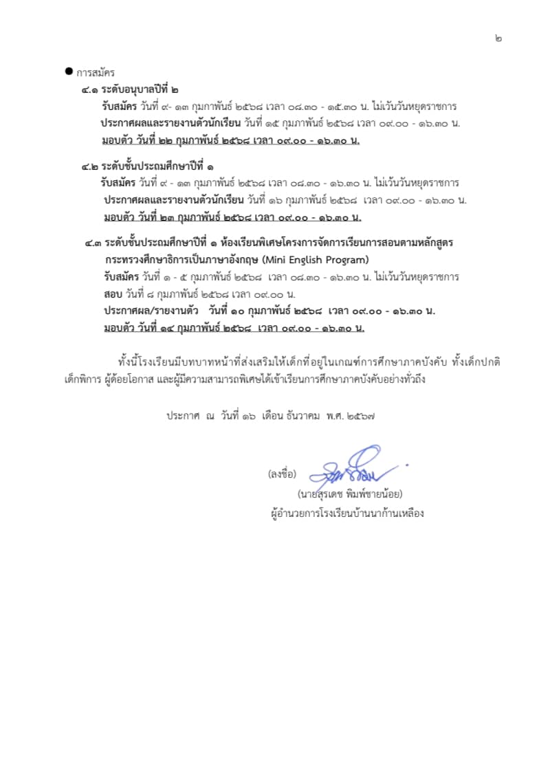 เรื่อง การรับสมัครนักเรียนประจำปีการศึกษา 2568