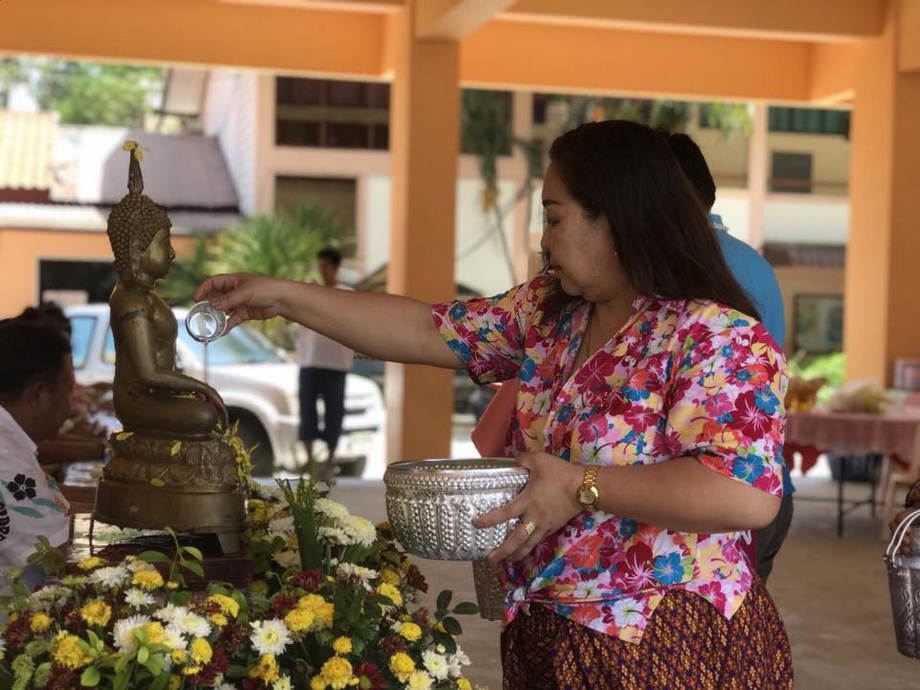 พิธีสรงน้ำพระรดน้ำขอพรผู้ใหญ่ ประเพณีสงกรานต์ ปี 2561